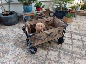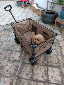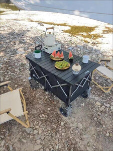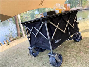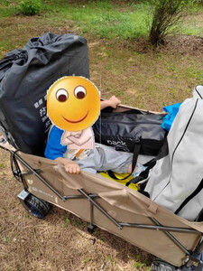 这货不用讲了,超值,拉力轻,容易拉。承重大,一车装备,孩子还爬上去坐着照样轻松拉动。大轮轻松应对各种地形。非常赞。叠加买的桌面,拉车变小桌。非常实用。折叠起来又超级小巧。非常赞。