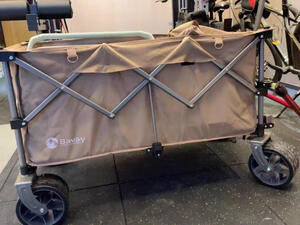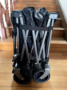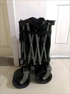 展开合拢都很方便,占地空间很小,前后轮都可以方便安装和拆卸,并且有防插反设计,很细致,拉手不会放手就倒下,前轮转向顺滑,车轮有一定越野能力,车子很大,拉两个孩子看起来还有些余力,总之性价比非常高,结合了市面上所有露营车的优点
