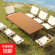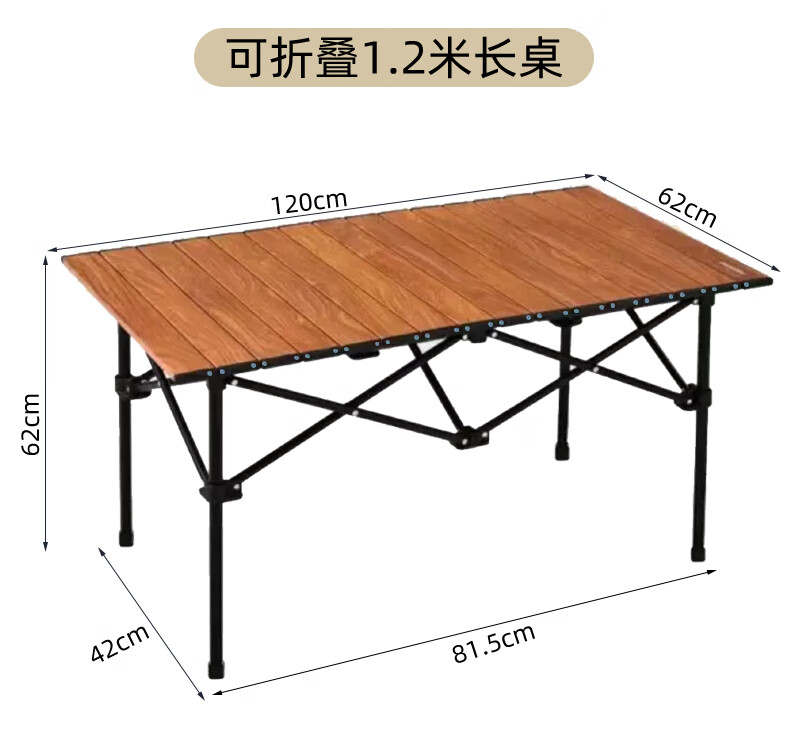户外桌椅便携式蛋卷折叠桌野餐桌椅套装露营烧烤装备 1.2m折叠加长桌-木纹