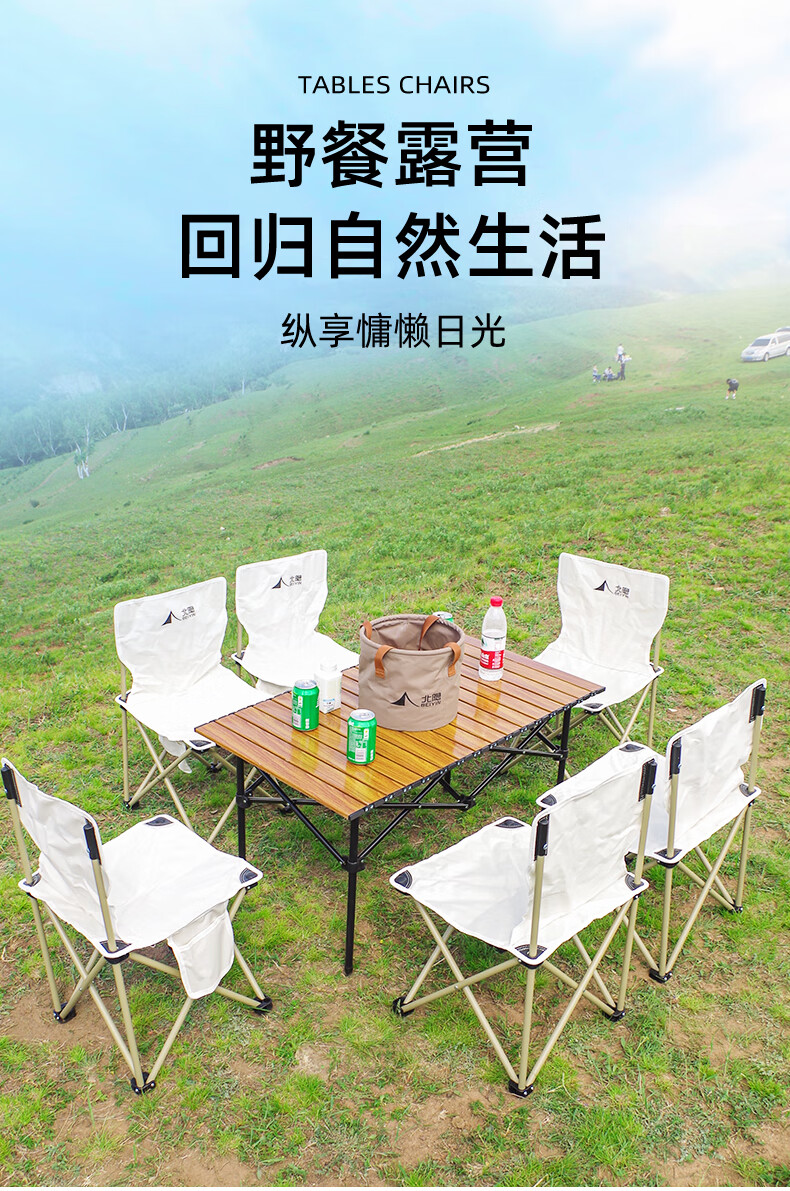 北乐户外便携式露营蛋卷桌可折叠桌椅子野餐摆摊桌椅野营野炊装备套装 木纹色中号【90cm】+克米特椅*4