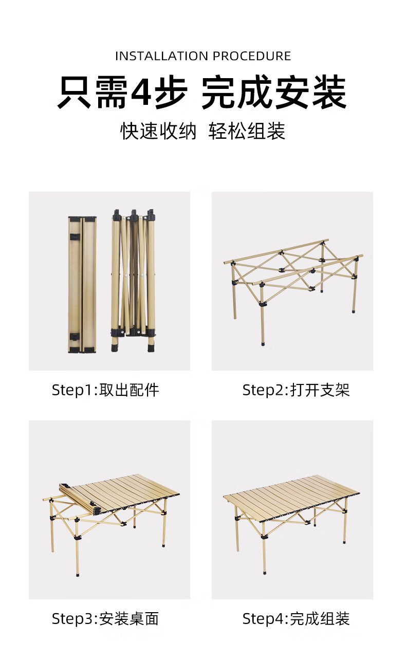 包装很精美,桌子展开有2米长,折叠起来方便携带,性价比超高,户外聚餐用着特别顺手!