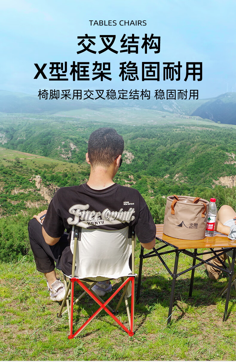 这款户外月亮椅折叠椅便携易收纳,承重稳固适合大体 重人群,坐感舒适支撑到位。70%以上买家提到商品承 重性能强,150斤以上用户使用稳固无晃动。有买家提到 “金属支架特别坚固,完全不用担心会摇晃,带着它去野 餐、钓鱼,露营超实用。