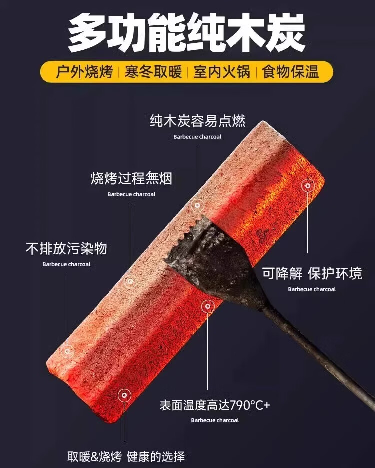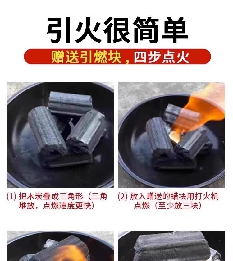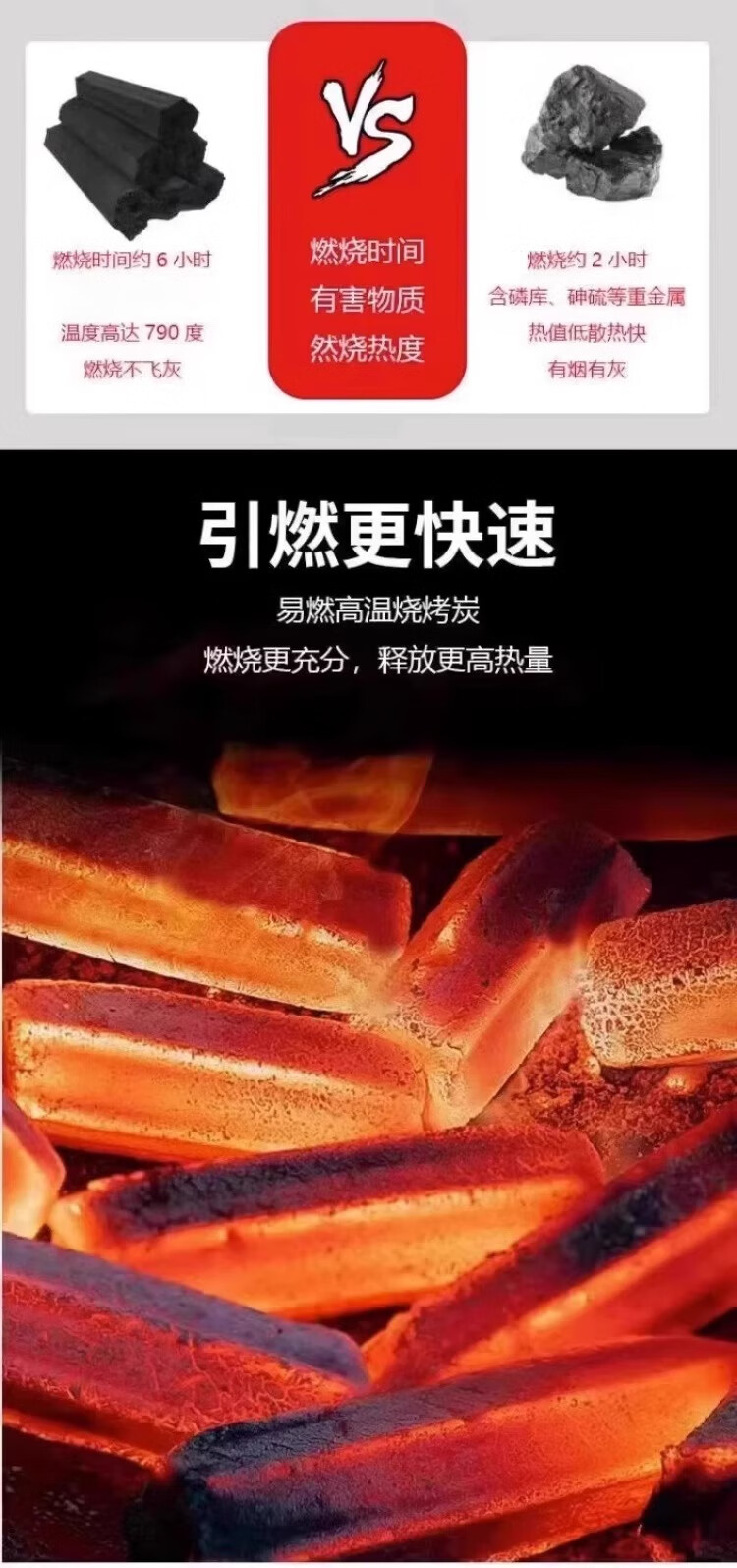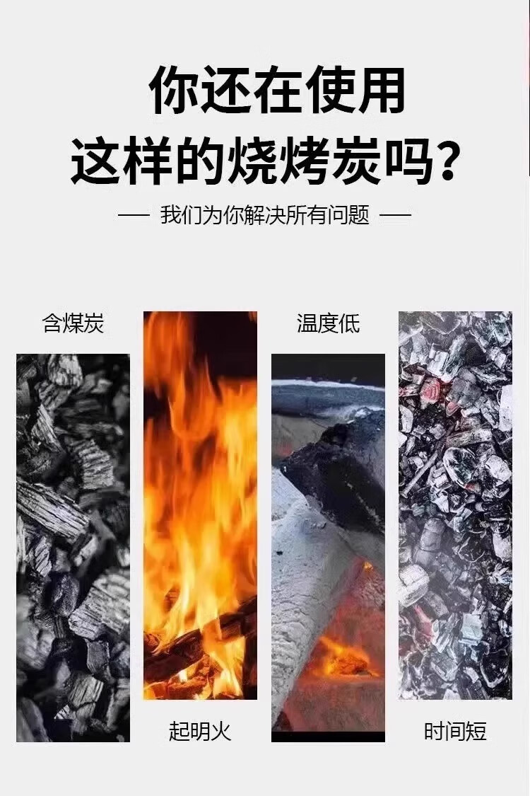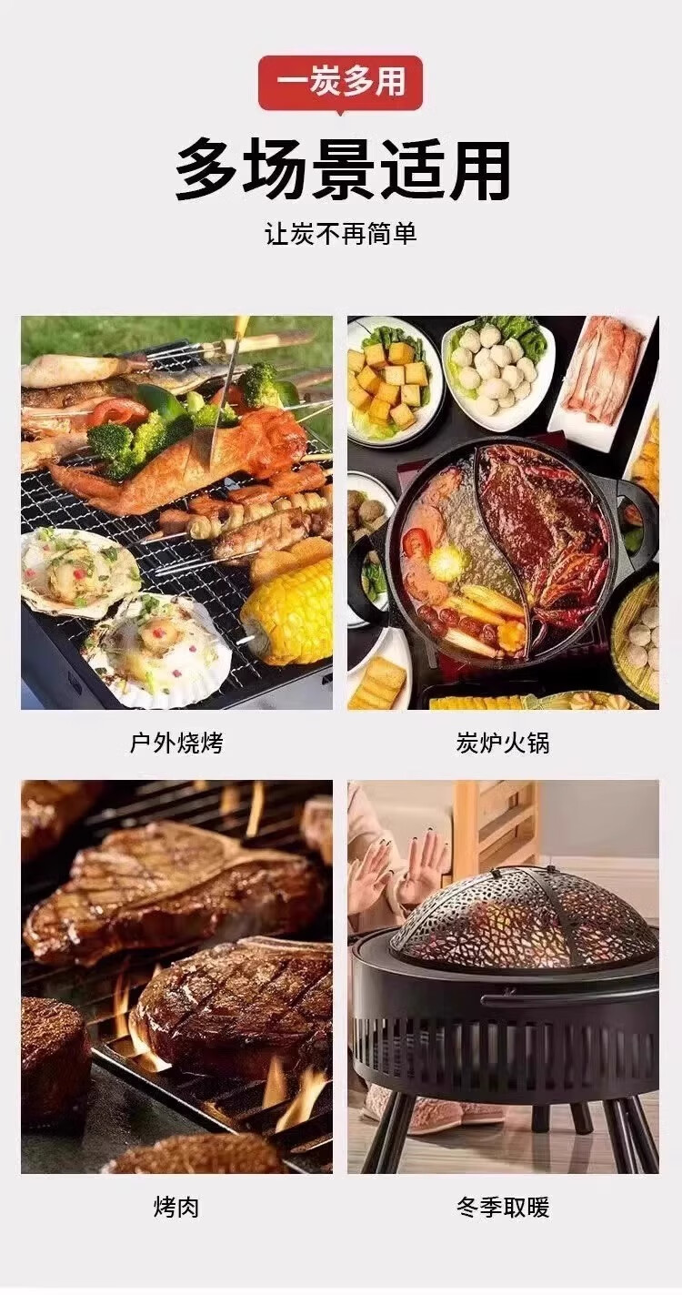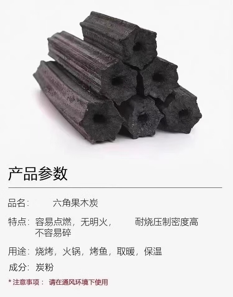 烧烤碳高温易燃耐烧木炭烧烤肉店批发机制碳户外六角木炭 5斤【赠引燃块*2+炭夹*1】