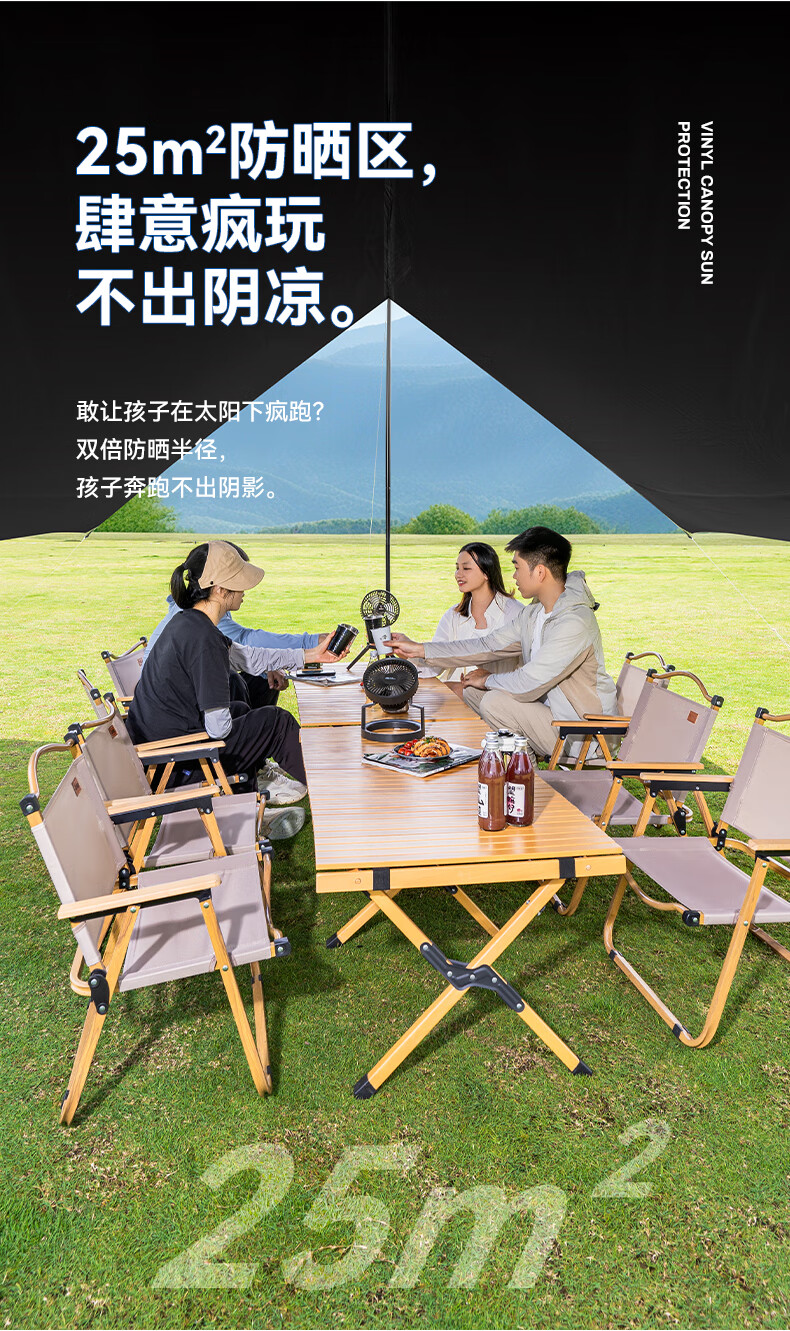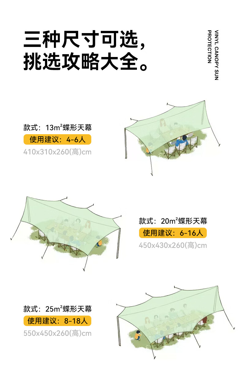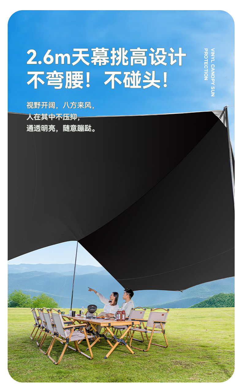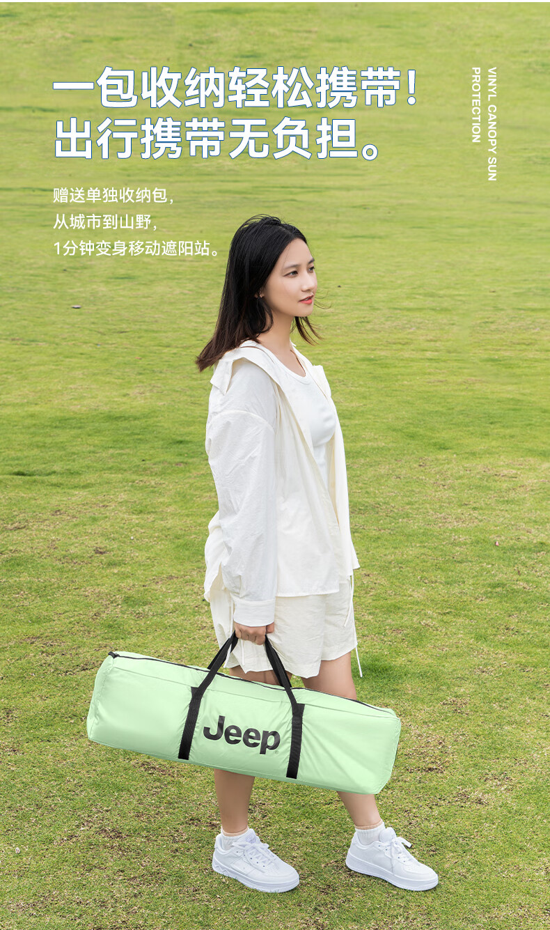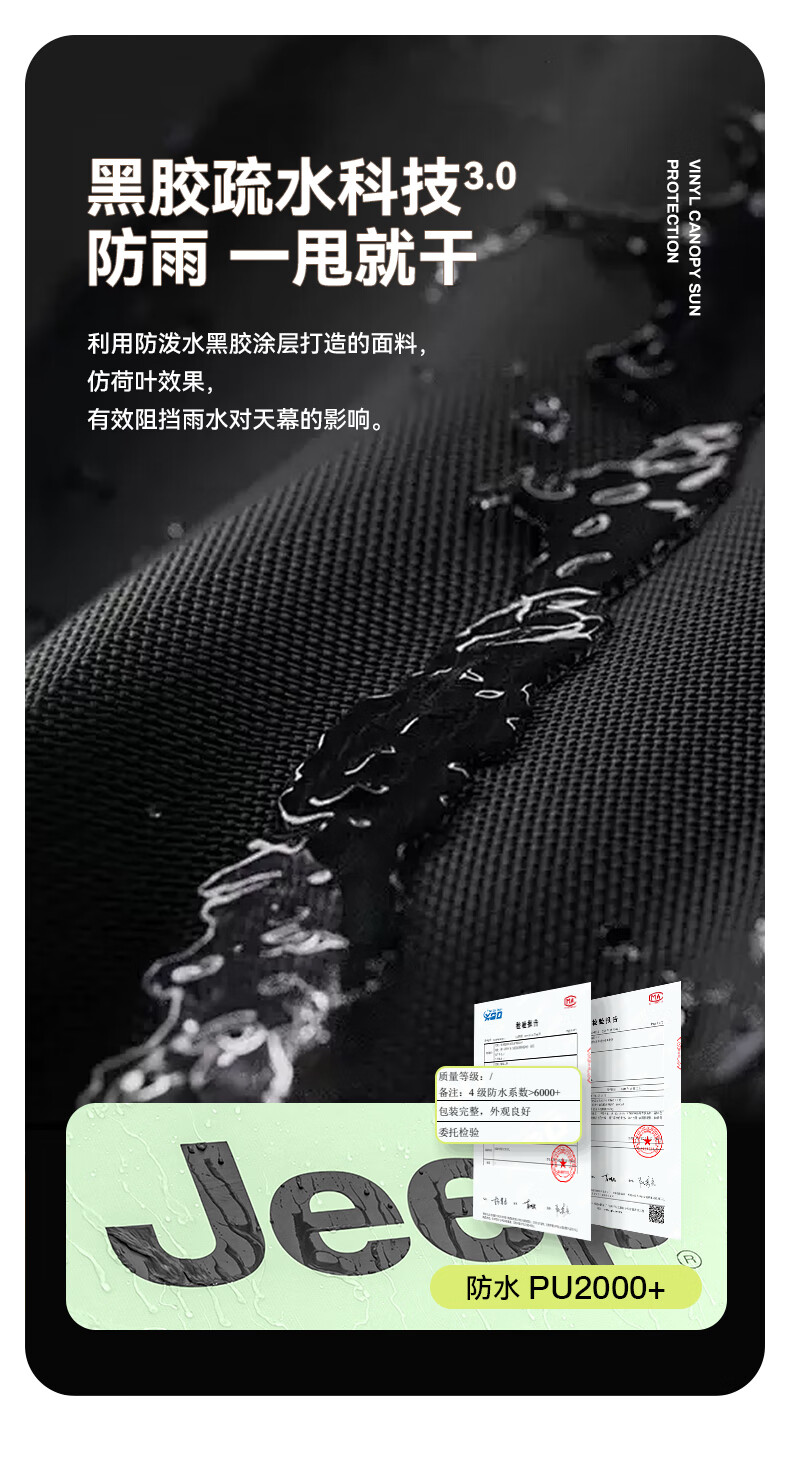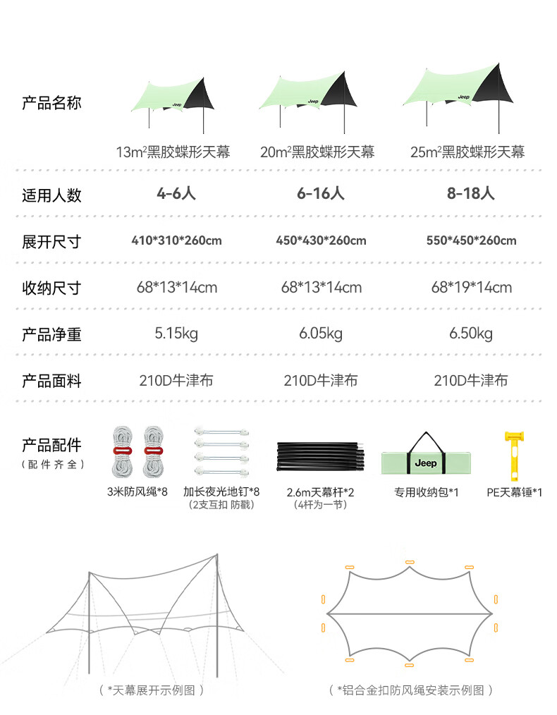 JEEP黑胶天幕户外遮阳防雨加强防晒沙滩津布露营凉棚雨棚蝶形帐篷天幕 13平黑胶蝶形防晒天幕【草木绿】