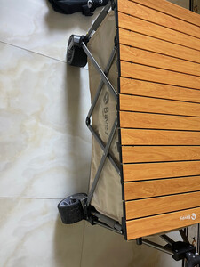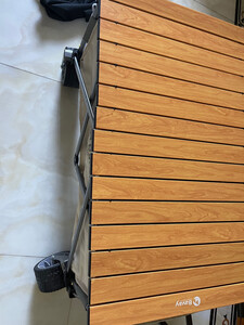 北欢 Bavay/露营车桌板户外蛋卷桌板便携式折叠桌营地车小推车桌板 木纹铝合金90×55cm 150L 支撑杆款