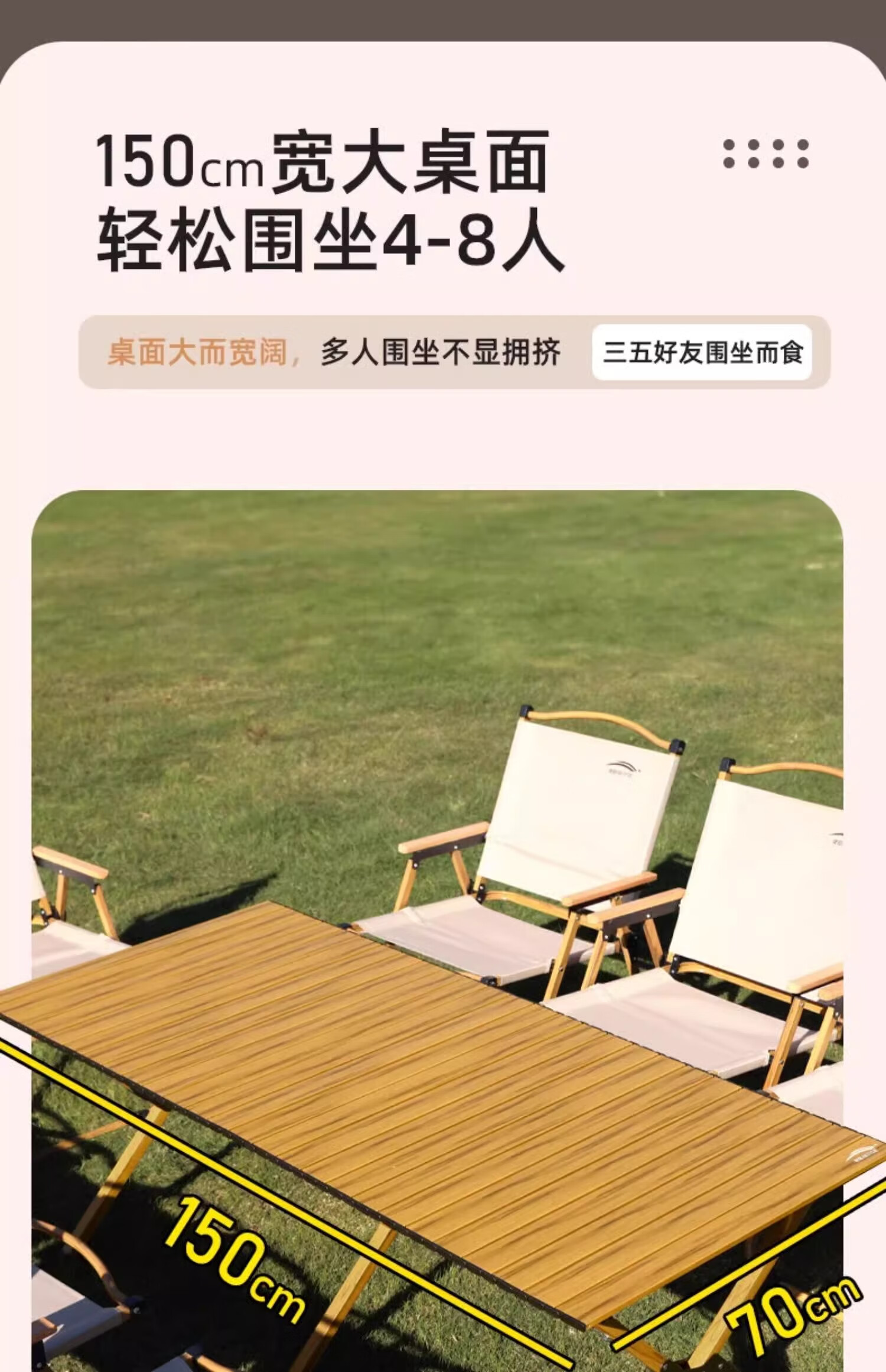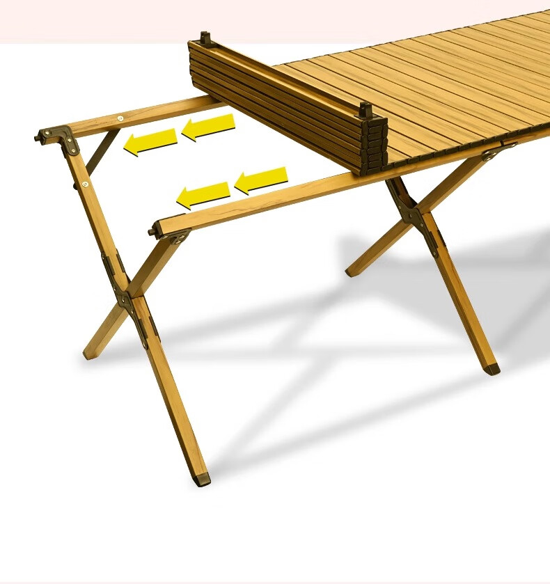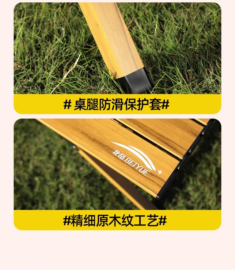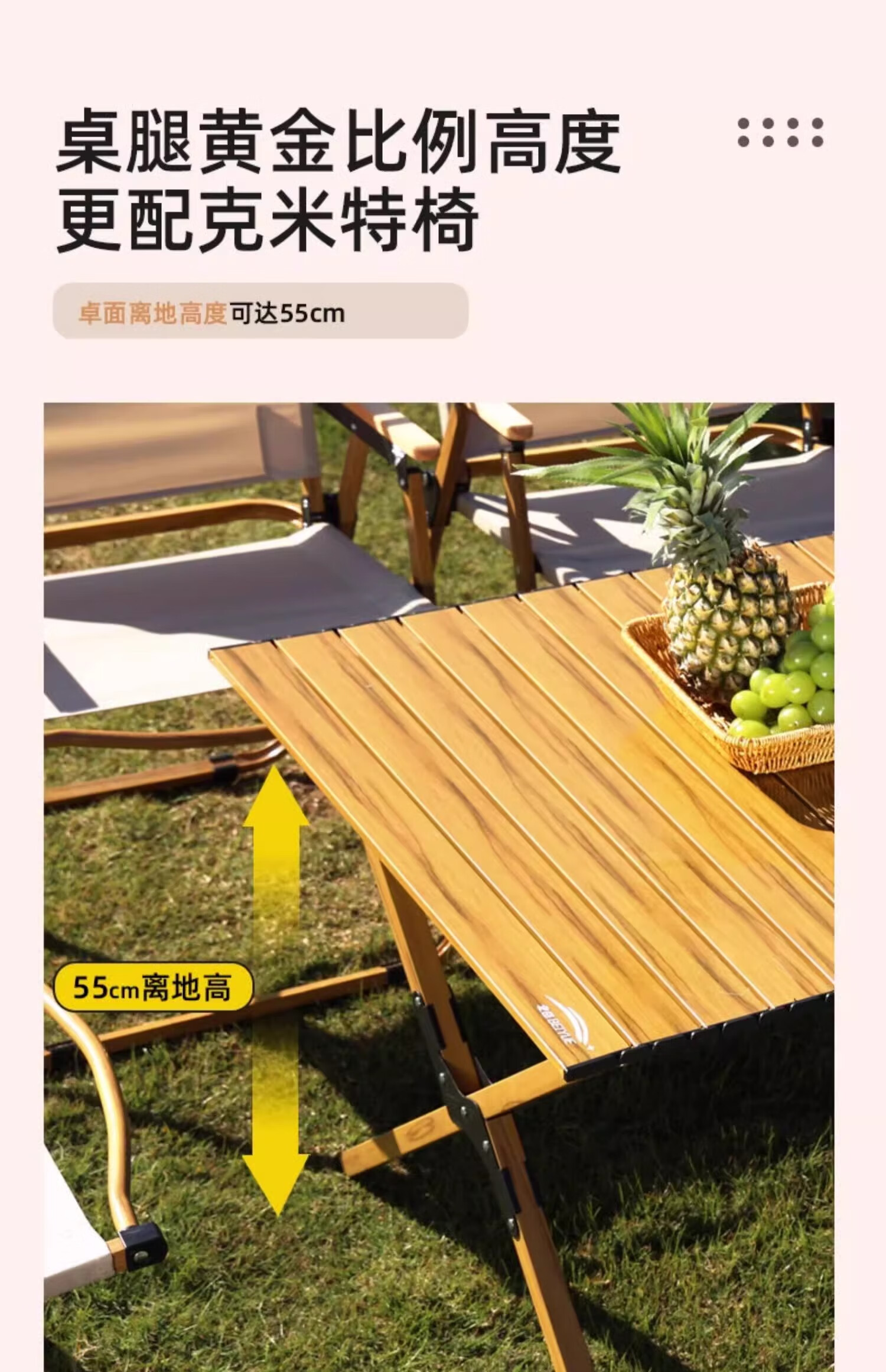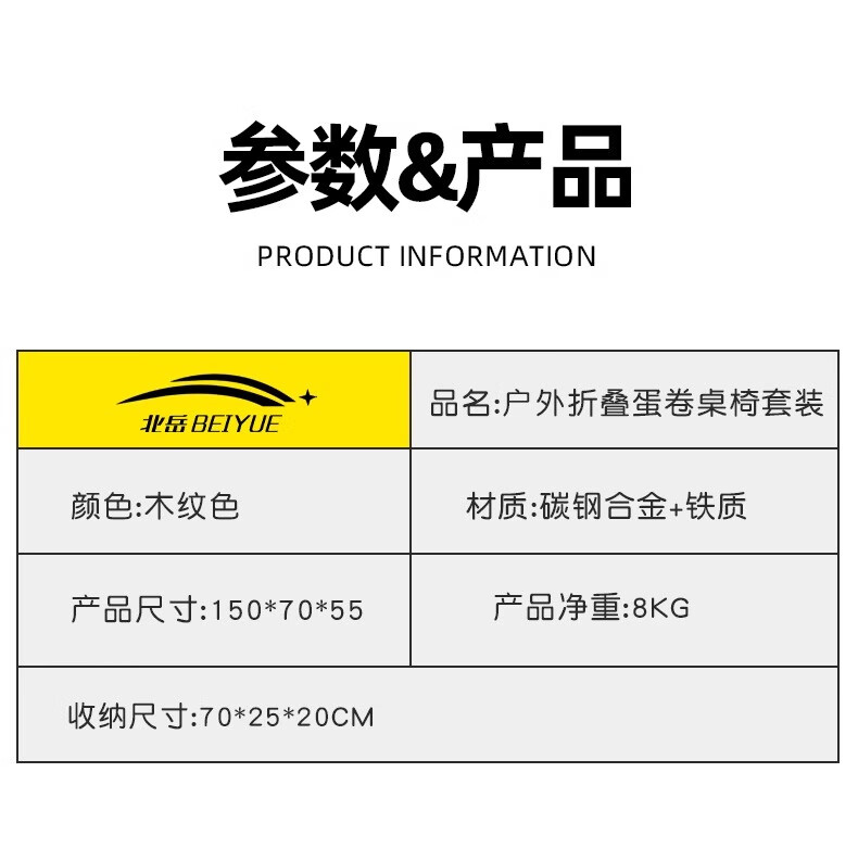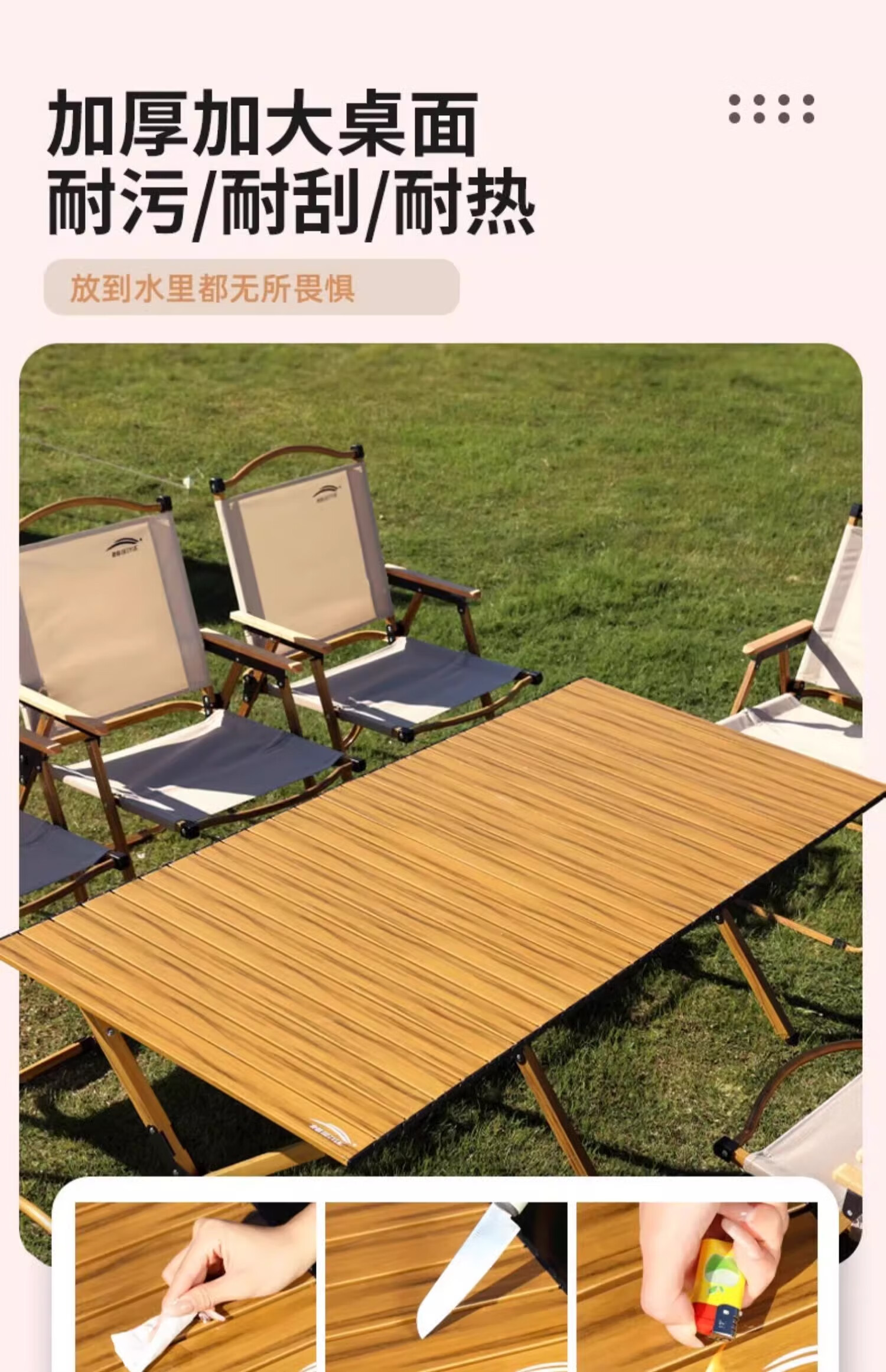 北岳户外折叠桌子便携式蛋卷桌可折叠野餐桌摆摊烧烤桌椅露营用品套装 小号60cm木纹蛋卷桌-加厚碳钢