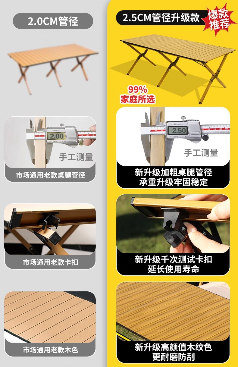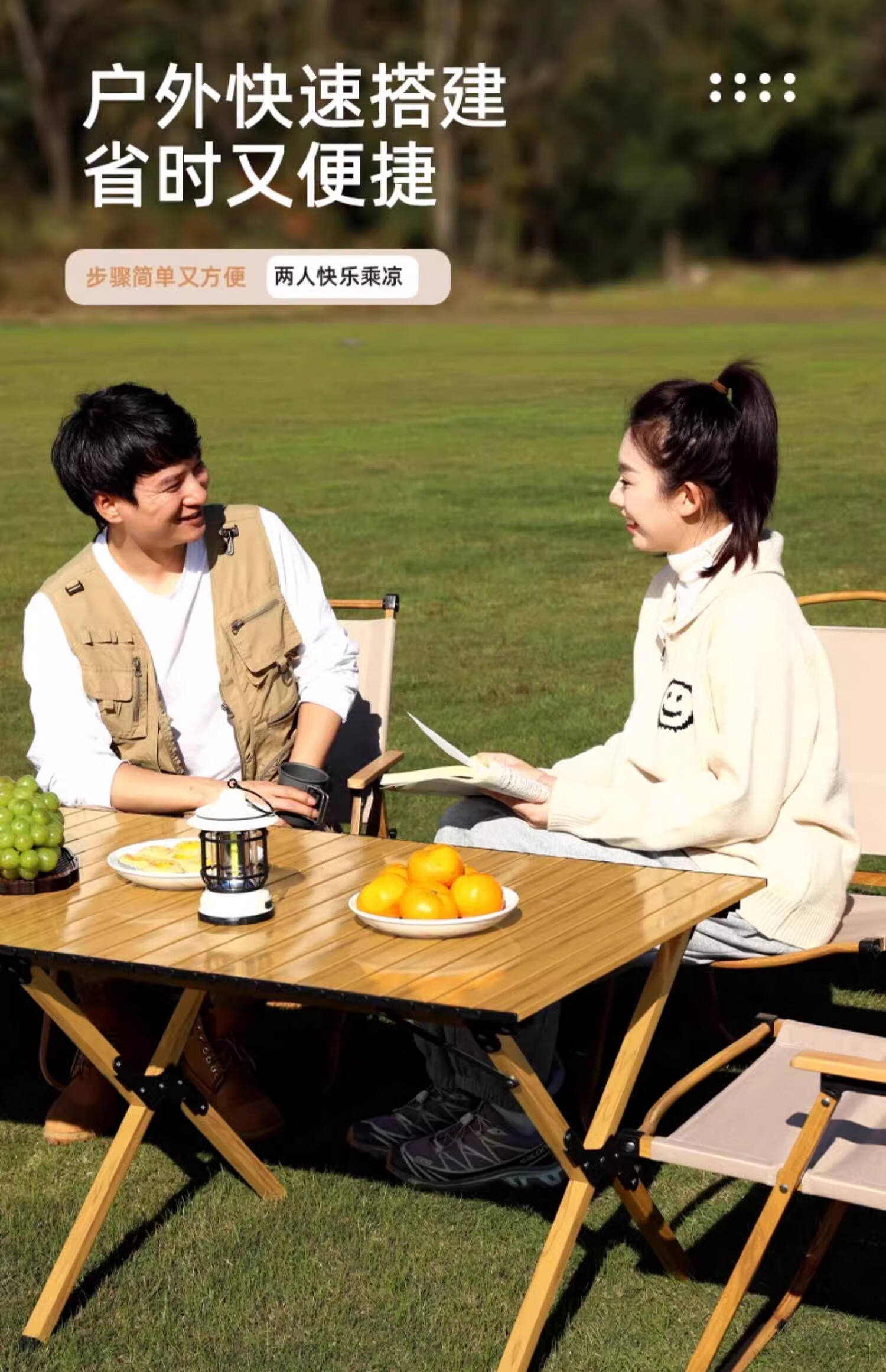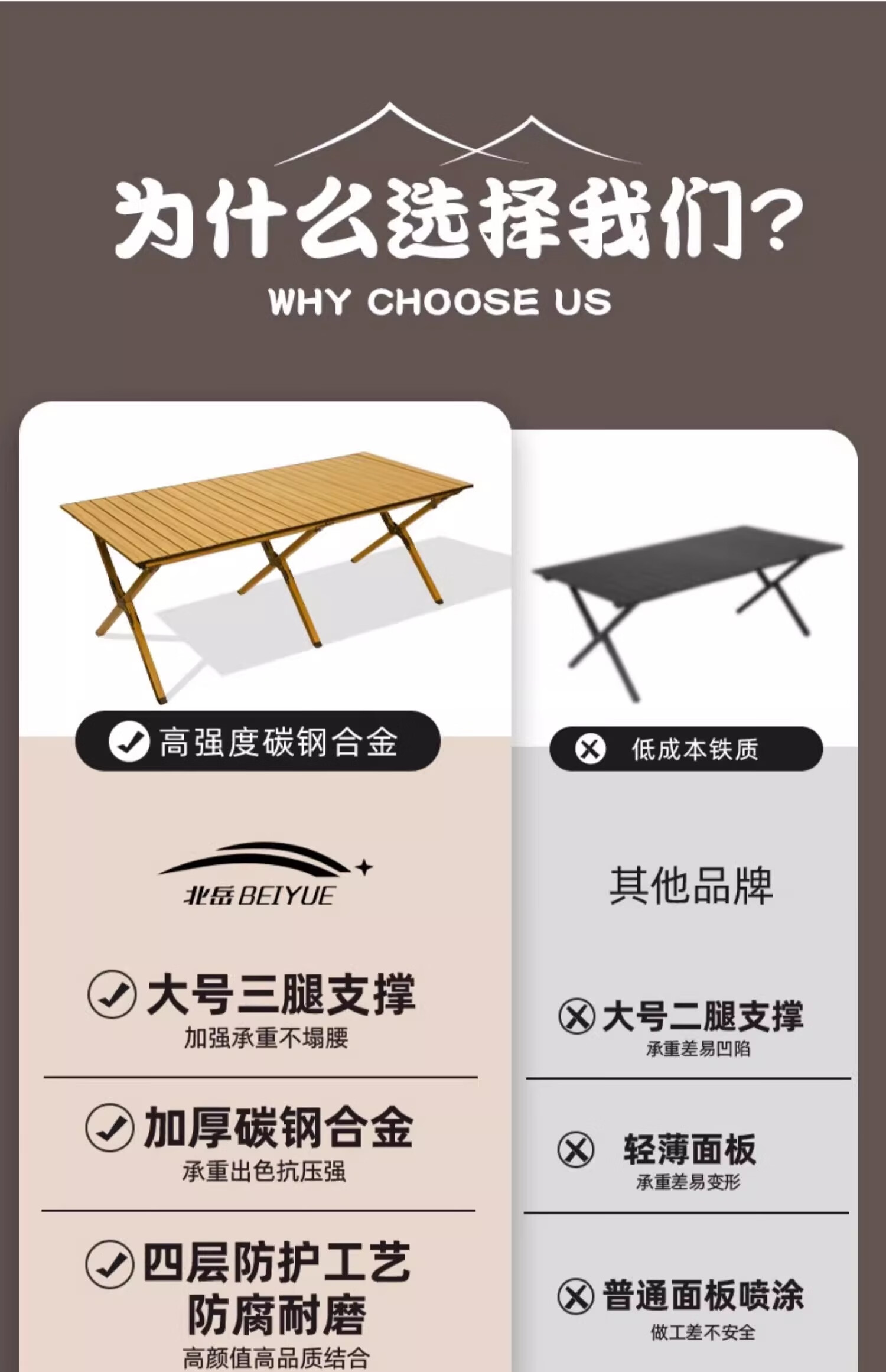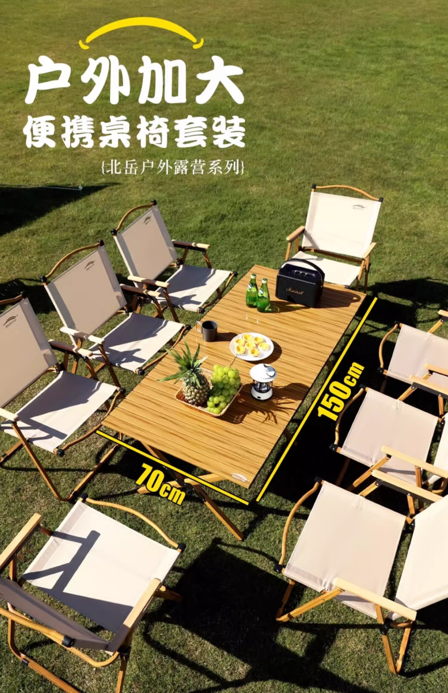 北岳户外折叠桌子便携式蛋卷桌可折叠野餐桌摆摊烧烤桌椅露营用品套装 小号60cm木纹蛋卷桌-加厚碳钢