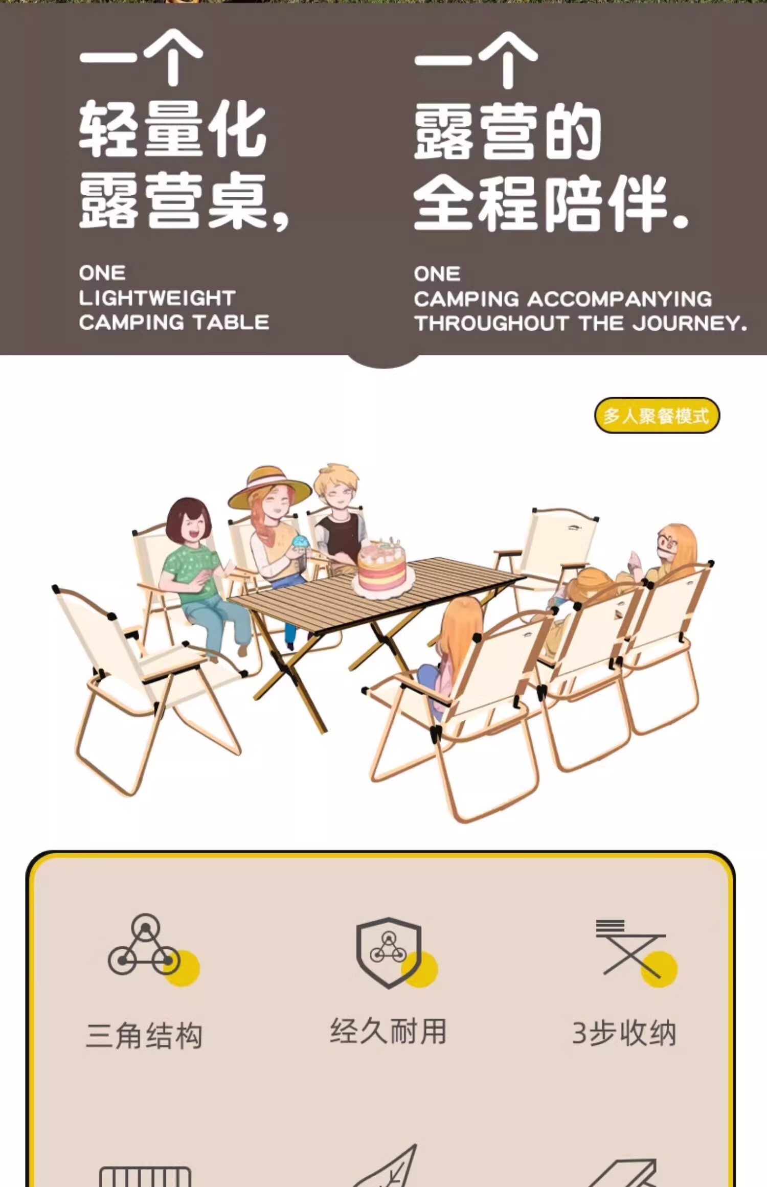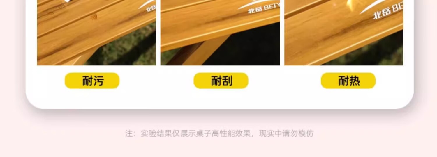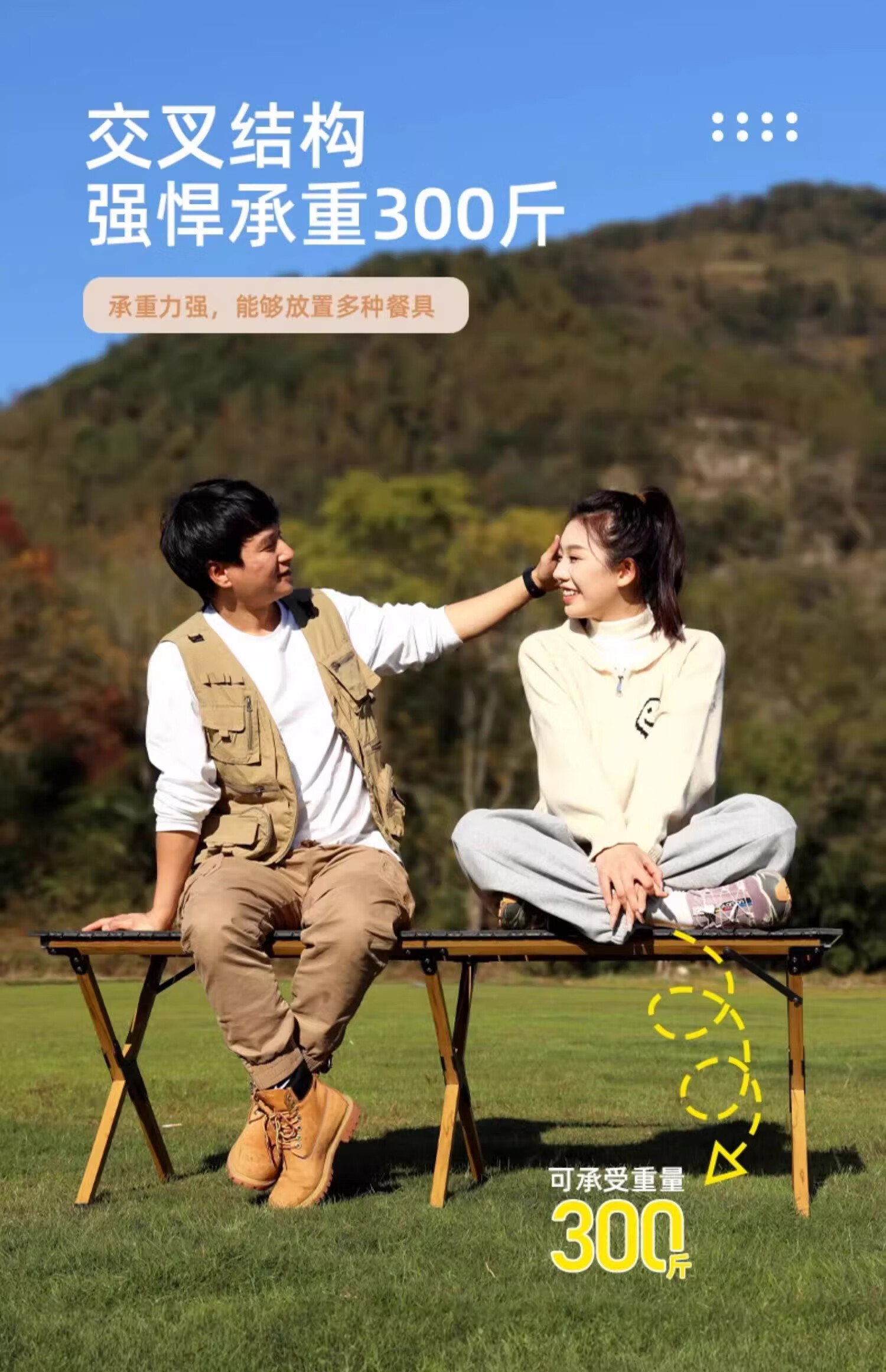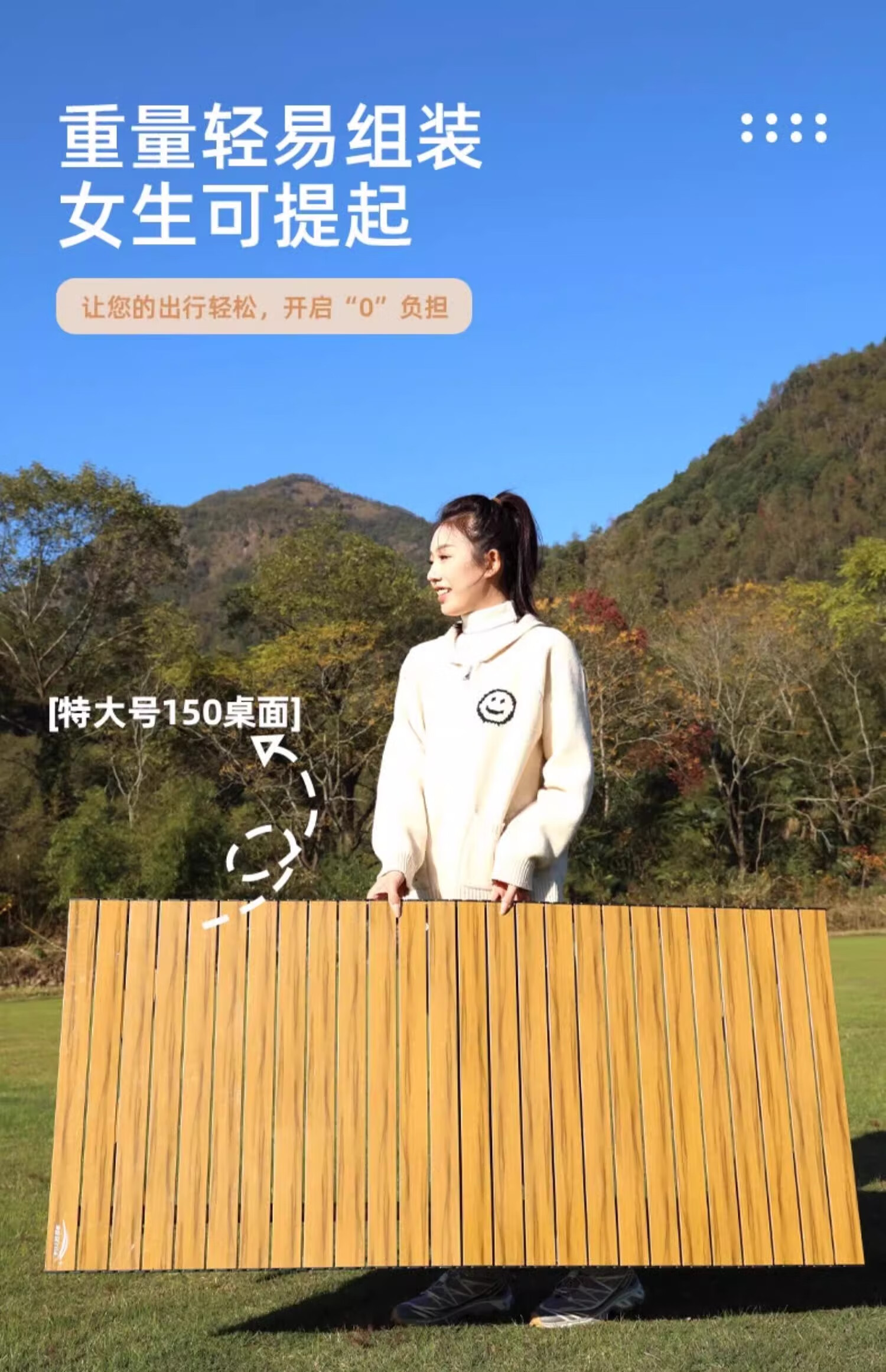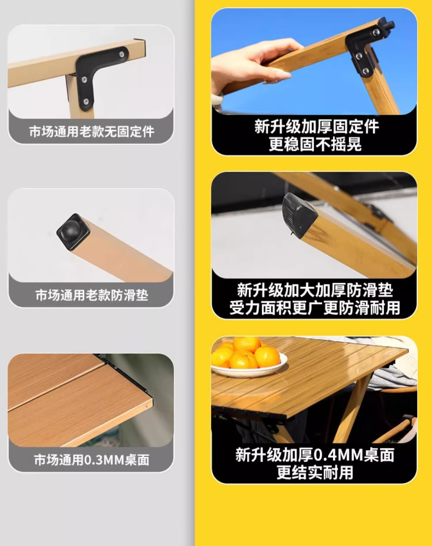 北岳户外折叠桌子便携式蛋卷桌可折叠野餐桌摆摊烧烤桌椅露营用品套装 小号60cm木纹蛋卷桌-加厚碳钢