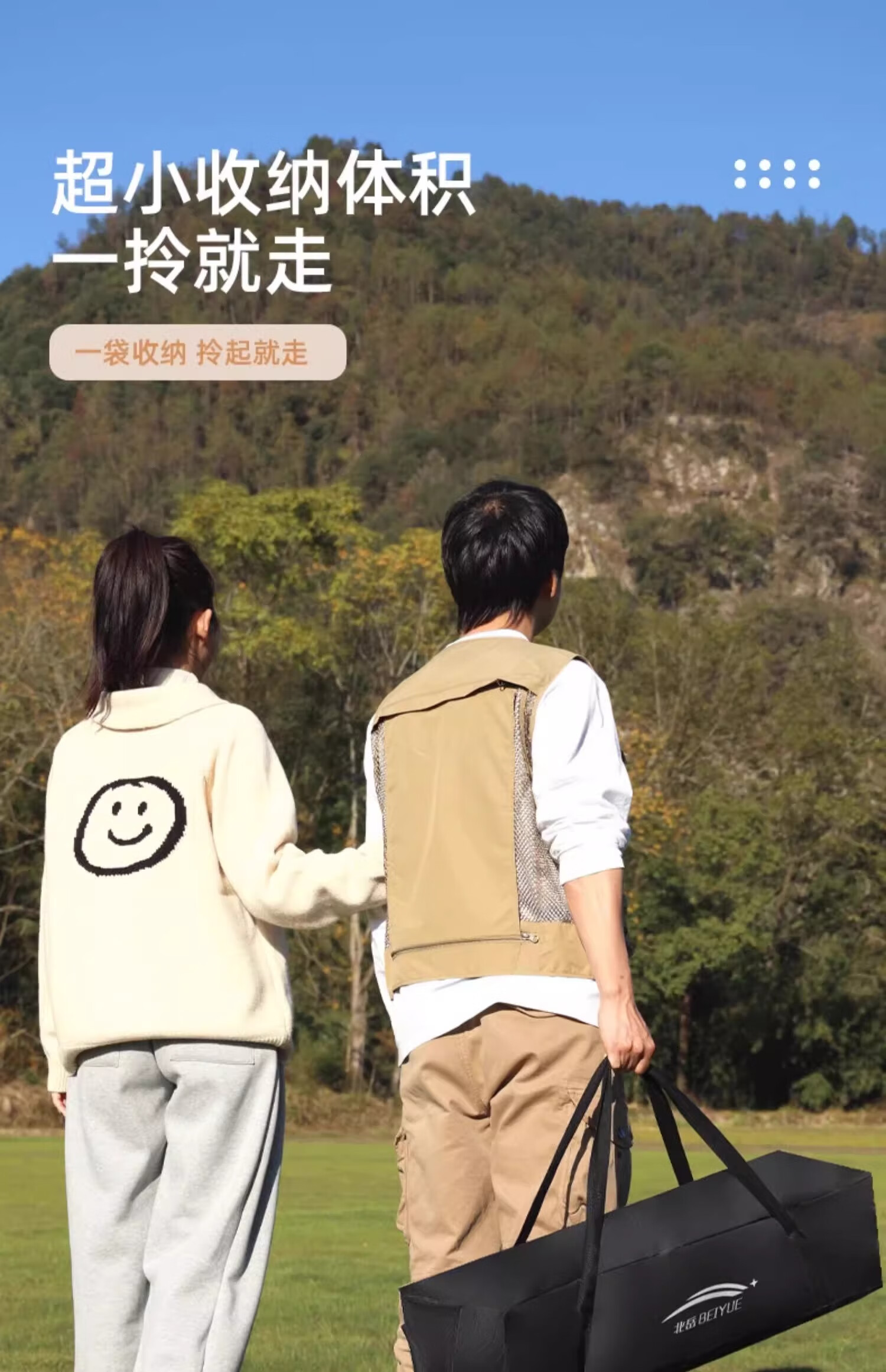 北岳户外折叠桌便携式露营桌子野餐桌椅套装野外轻车载装备用品蛋卷桌 【2.0管】全黑60桌+包