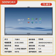 希沃75英寸电子白板多媒体教育教学会议触摸一体机智慧屏平板显示器4K 75英寸i5 8G 256G处理器