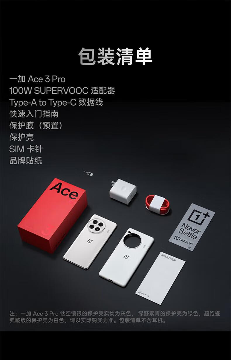 一加Ace3 Pro 第三代骁龙 8 旗舰芯片 冰川电池 oppo新智能游戏5G手机 绿野素青 24GB+1TB 单机+原装快充+店保一年