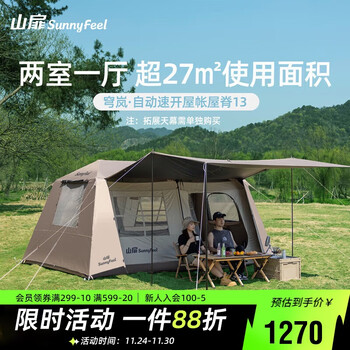 山扉黑胶防晒帐篷户外全自动天幕帐篷一体式速开折叠帐露营装备