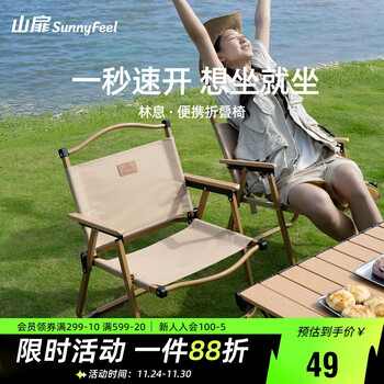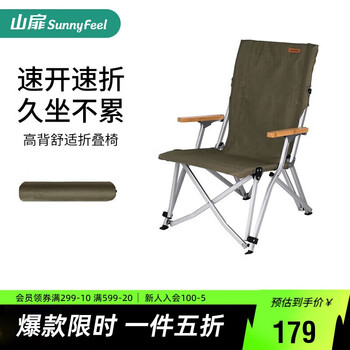 山扉SunnyFeel山扉户外露营铝合金克米特椅 野外营地便携野营折叠椅 小号钢管军绿色(60*52*43CM)