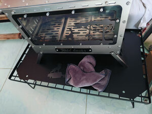 东西不错,轻便但扎实,烟囱加了3节,引火很好,火烧的很旺,隔着玻璃观火感觉不错。烧过一次后,玻璃没有变黑,顶部和下面几节烟囱已经有一大块烧成漂亮的蓝色了。