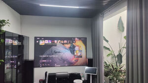 这个激光投影的效果很不错,亮度高,屏幕清晰,有各种模式可选,玩游戏选极速游戏模式几乎没有操作延迟,看电影选电影模式可以让画面更流畅,平时光线不拉窗帘就很亮很清晰,晚上打开灯也没有太大影响