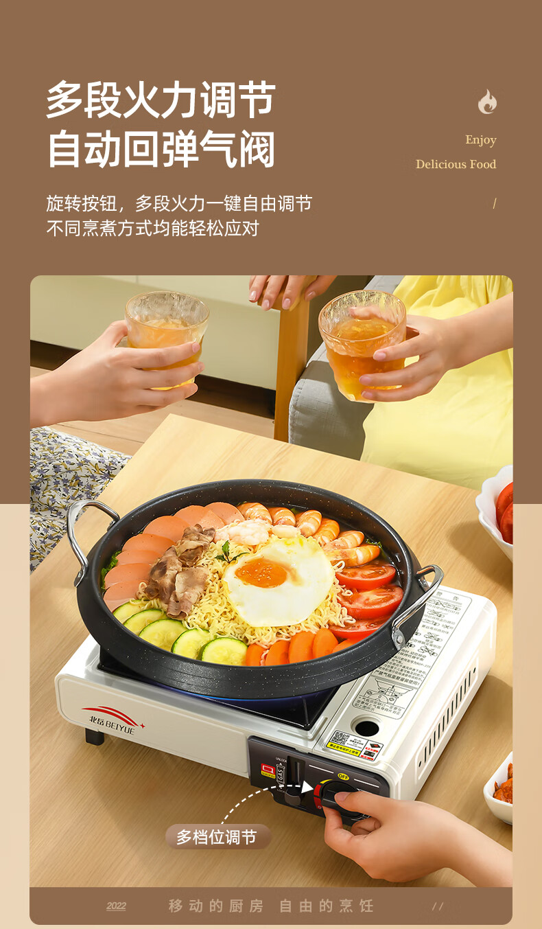 续航时长:真心比较不错不错,真的不错,特别适合野外使用,一块气能用两个小时,三个小时都用不完。 火力大小:火力很大,小火这一块也比较方便。 适用场景:家里的野外都可以。 产品做工:绝对对得起这个价格。