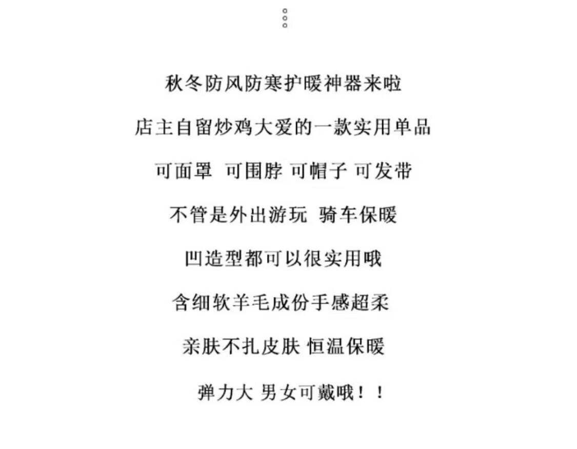 防风效果很好,围巾围脖通用,也不冻耳朵了,洗后戴很合适,也耐脏,冬天神器。发货很快,到货也是,隔天到