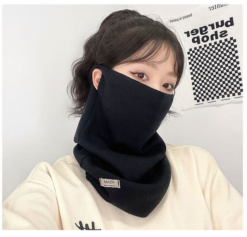 勋狸粑新款围脖挂耳面罩秋冬季男女多功能骑行保暖防寒韩版百搭脖套头巾 纯色带标【黑】