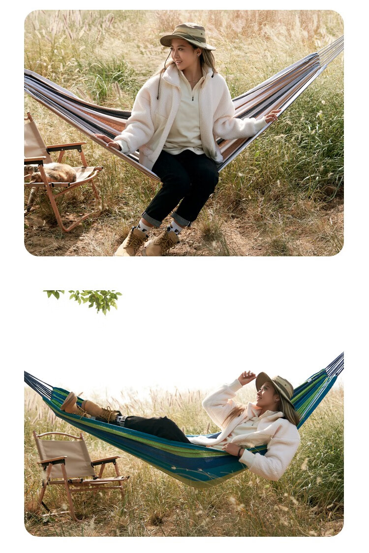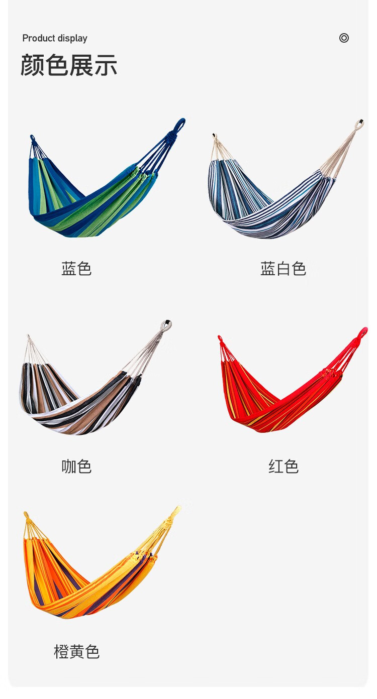 安丹迪(Adandyish)双人月牙弯棍防侧翻吊床 户外露营休闲加厚加宽帆布吊床弯木 蓝条