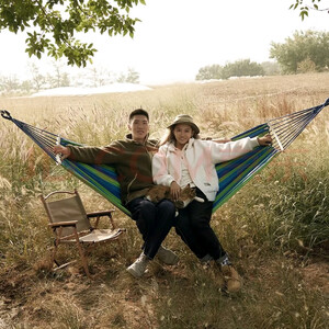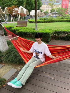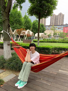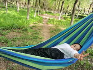 儿子一直想要每一个吊床,挑选很多品牌,看评论都要各种问题,实在不知道怎么选,最后选了这款吊床,拿到手迫不及待到公园试用,把吊床绑到二颗树上,效果还不错,儿子很轻松躺上去,没有侧翻过,我尝试坐上去,觉得还是很结实。