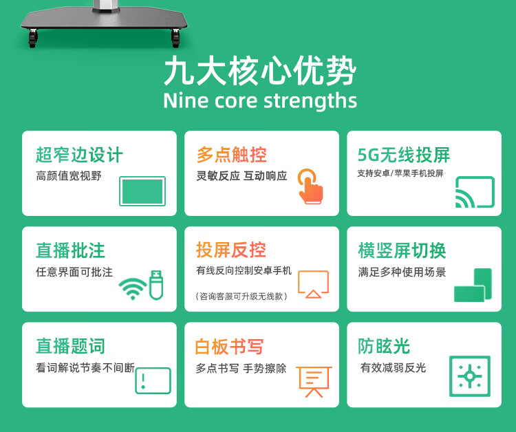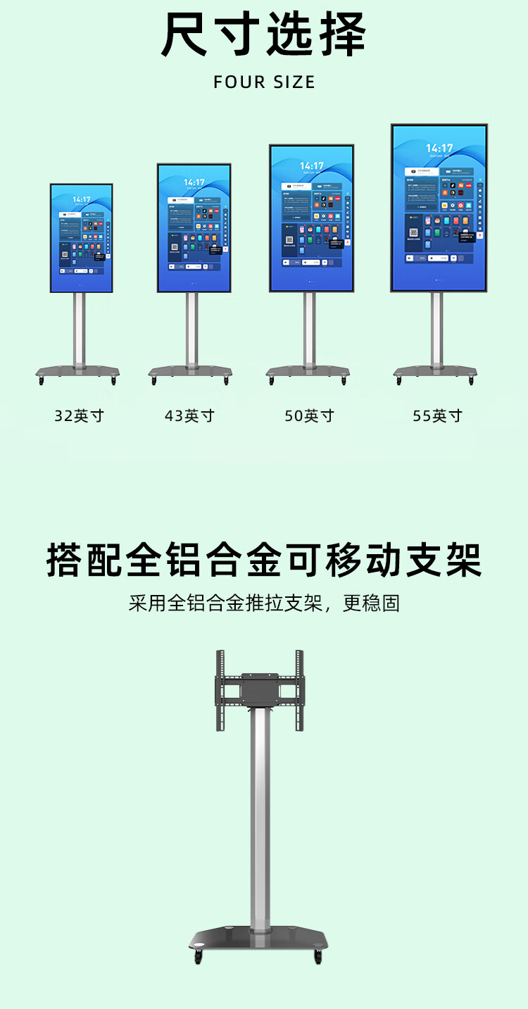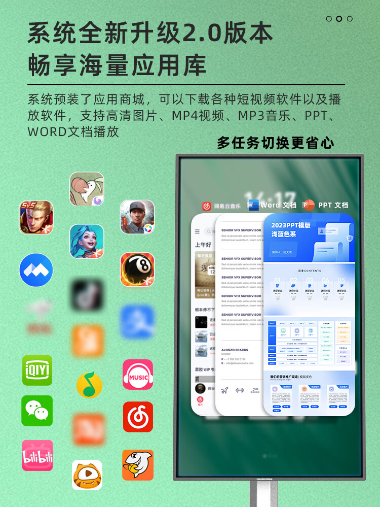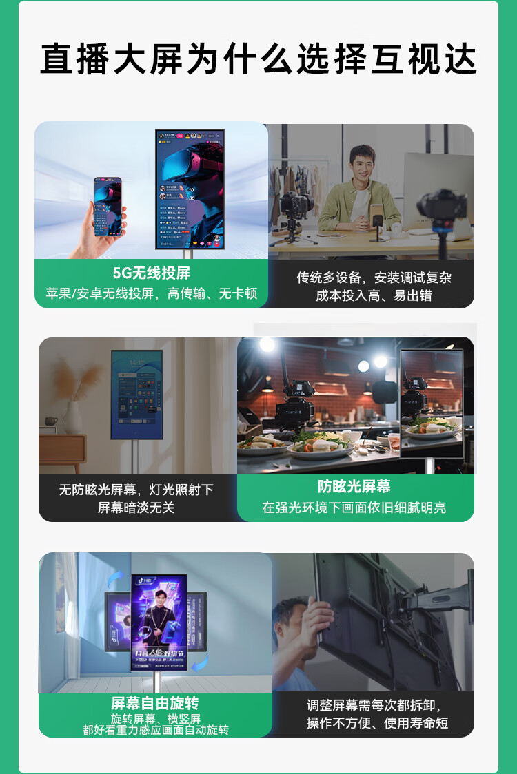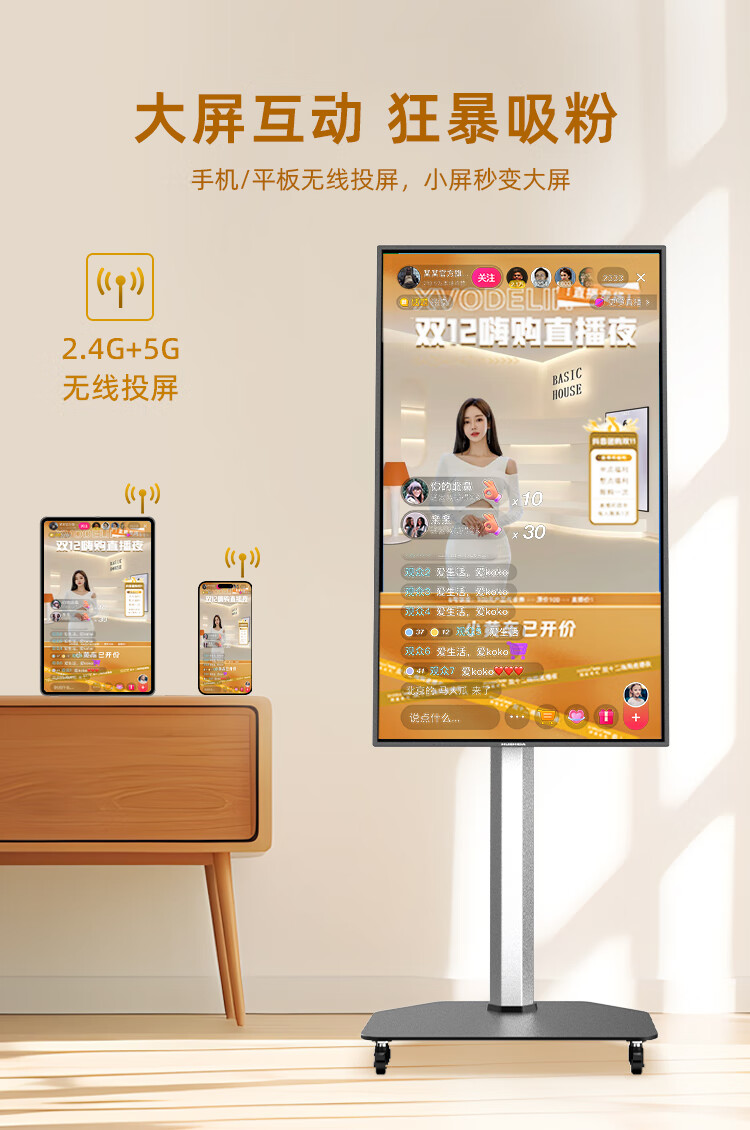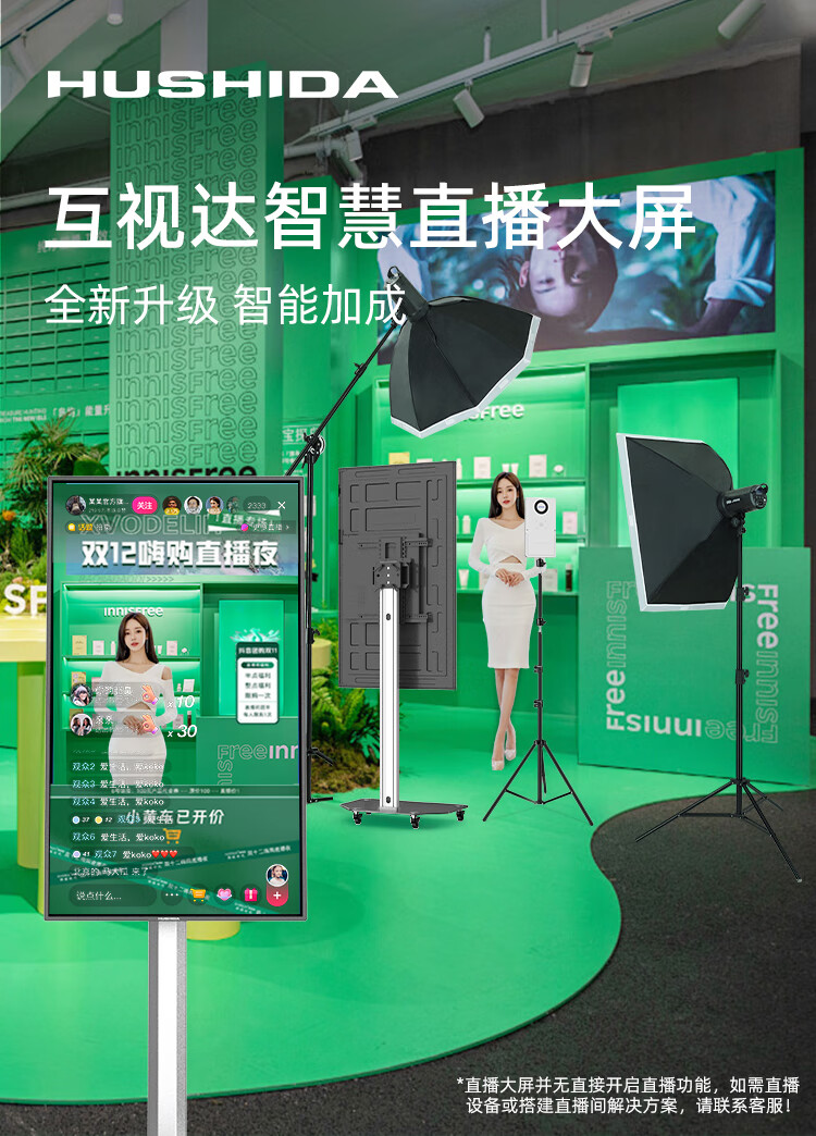 互视达(HUSHIDA)直播大屏触控一体机智能AI桌面直播一体机 网红主播直播设备 专业直播间触摸屏 32英寸+豪华推车+尊享版8+128G 直播大屏