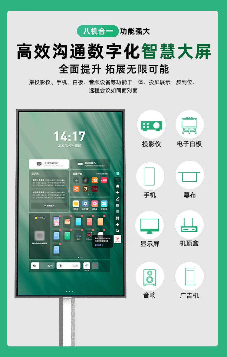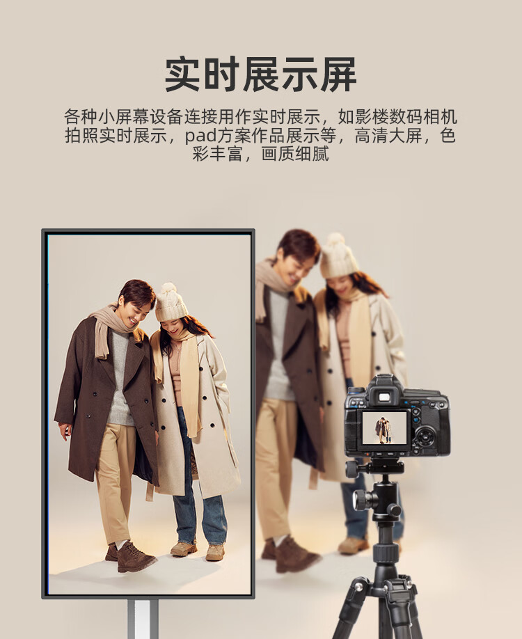 看了好几款,这款很实用,直播间当提示用,还能当讲课板,一机多用。很好用,清晰度够用,送货师傅很快,安装便捷,以后有需要再来。