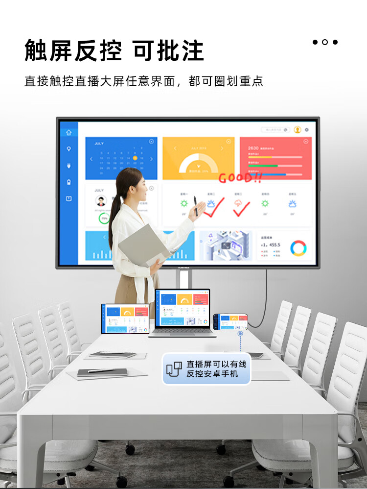 这个用在直播间 很实用 可以手机投屏也可以电脑投屏 之前在别的地方买了个不能触屏的 现在这个触屏的真没话说 就等于是一个大型的平板 分辨率也很高 看的很清楚 很方便 还可以旋转