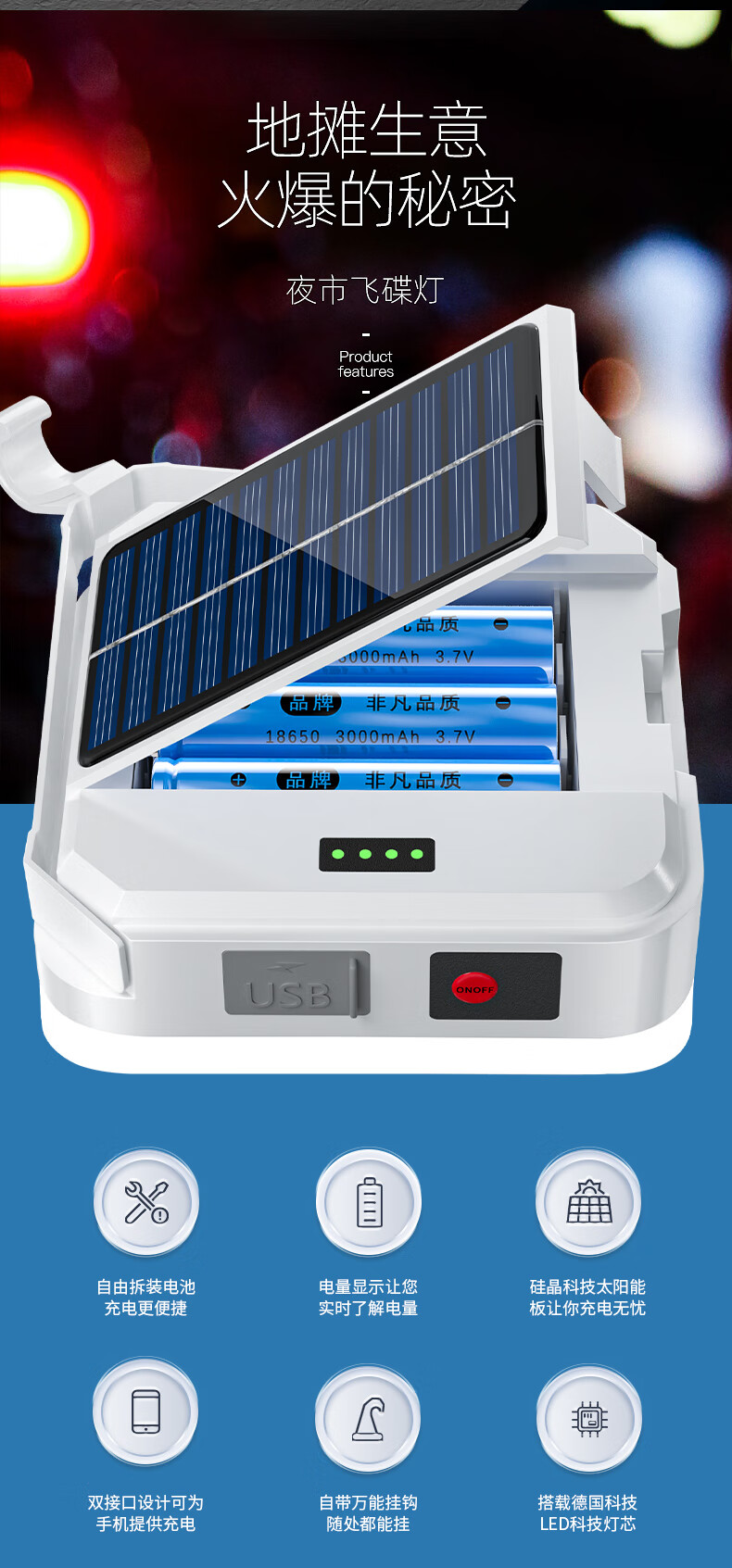 夜市摆摊灯充电式照明灯可换电池太阳能露营灯新款户外led应急灯 单灯款-爆亮3000W型【太阳能充电】无电池 优选【穿越-星空】新款