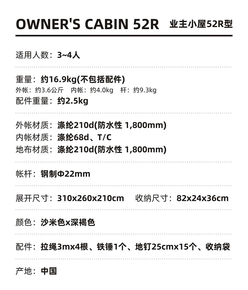OGAWA OUTDOOR EQUIPMENT PATHFINDER SINCE 1914日本小川Ogawa Owner Lodge Type52R户外家庭露营屋型帐篷 业主小屋52R型