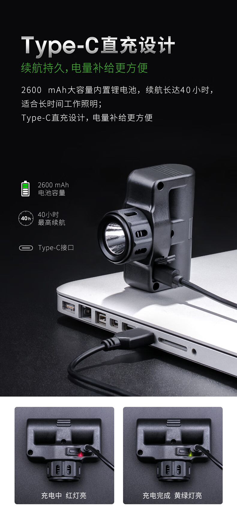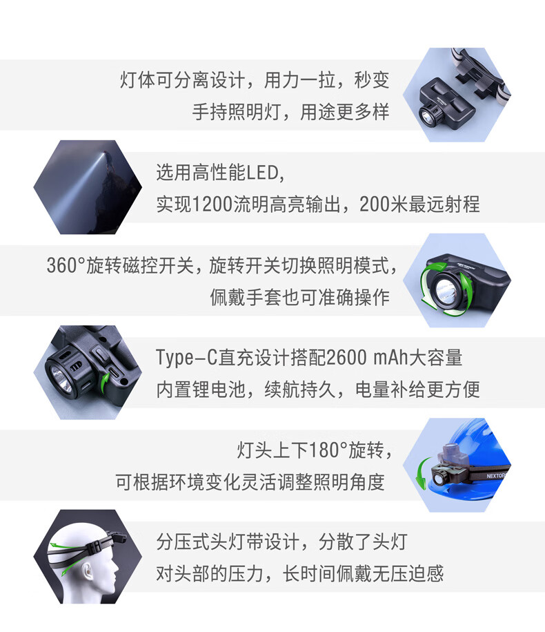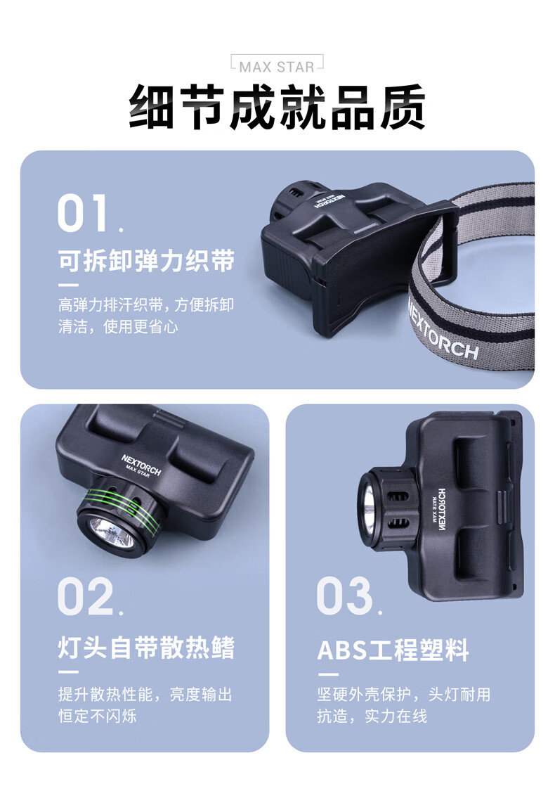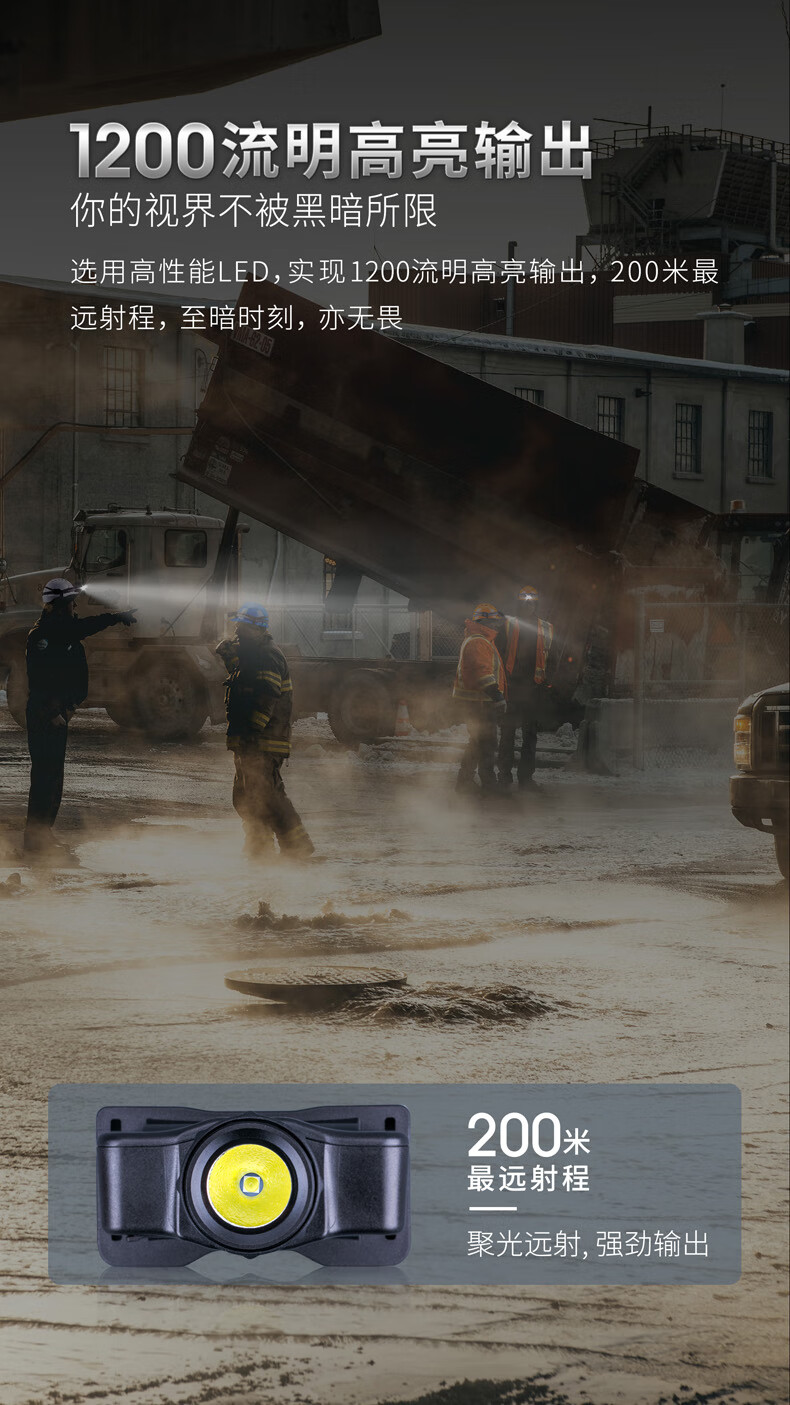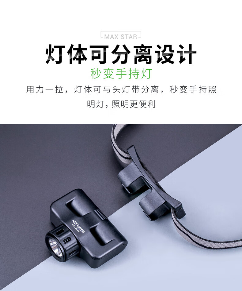 纳丽德(NEXTORCH)MAXSTAR工业检修头灯磁控旋转开关灯体可分离直充头灯1200流明