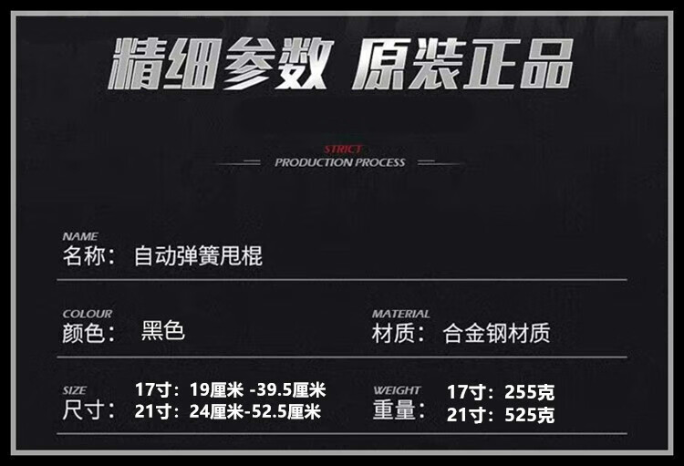 捷骜新特工自动弹簧甩棍车载破窗女防身自卫实心用品伸缩袖珍迷你 16寸钛黑色