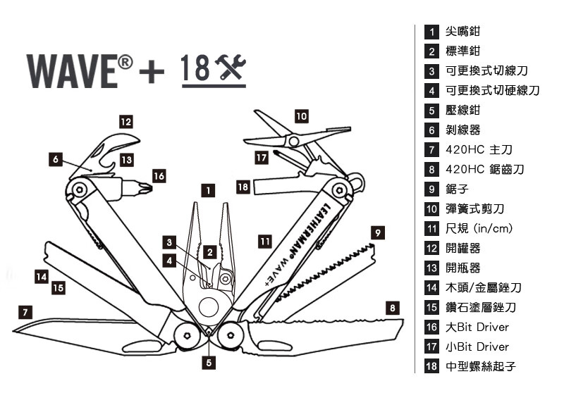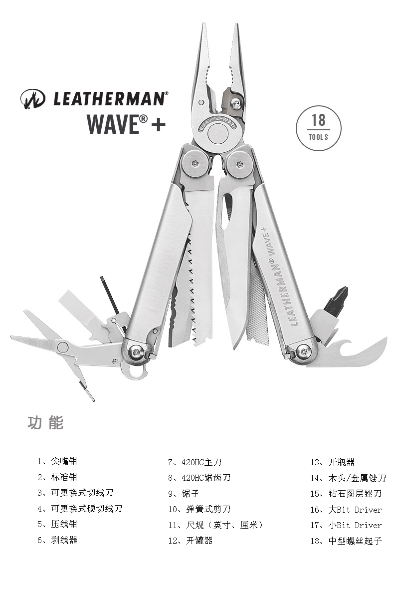 LEATHERMAN Leatherman 莱泽曼 PLUS波浪不锈钢户外装备多功能工具刀多用途刀钳 银色-可替换钳口