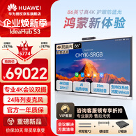 华为(HUAWEI)IdeaHub S3视频会议平板一体机鸿蒙系统4K智慧大屏办公投影白板书写触摸电视 S3 86吋+i7模块【鸿蒙/Win10双系统】