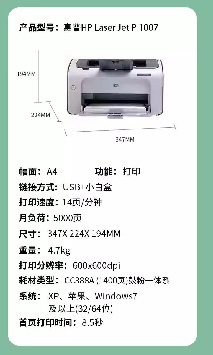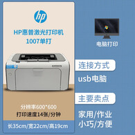 hpHP1007黑白激光打印机 A5凭证学生打印作业 办公家用打印机A4打印 9.9新hp1007不带硒鼓