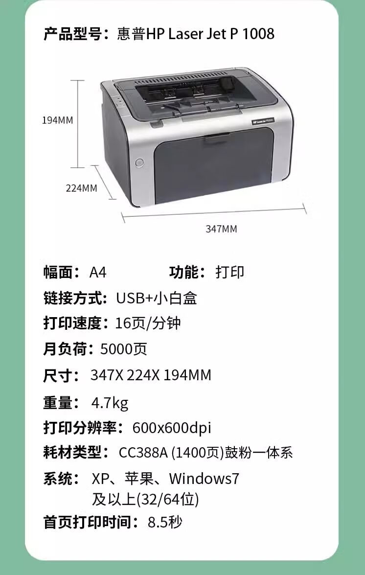 小米二手惠普1020110611081007黑白激光打印机家庭凭证作业无线 家用学习必用款惠普1007 官方标配