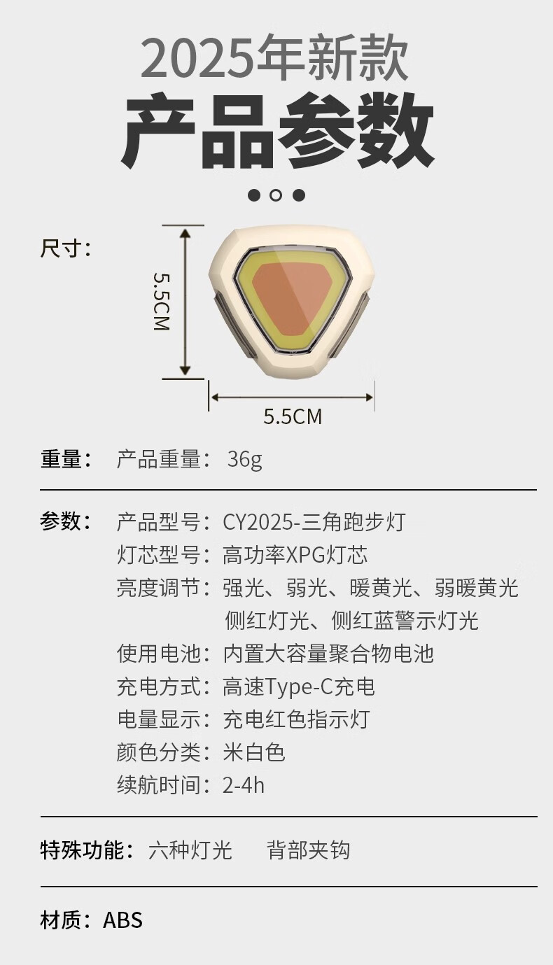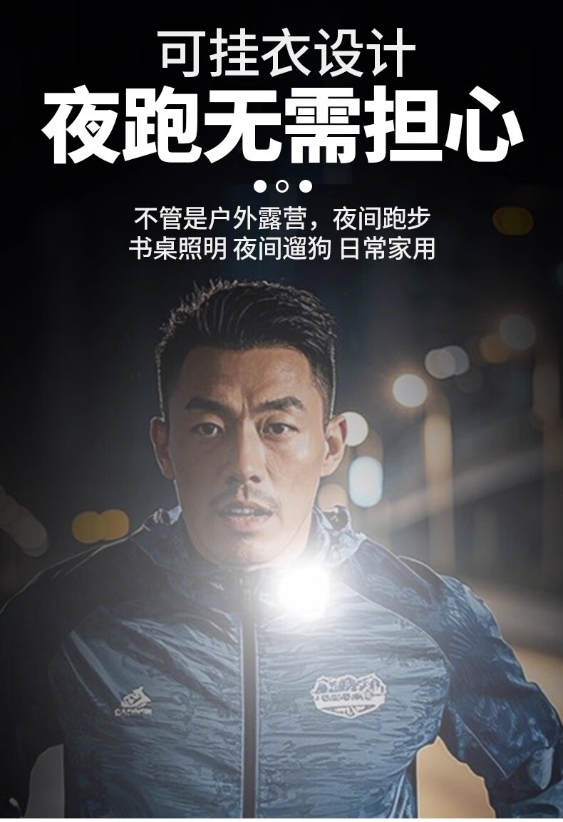 最近天气好一点出来夜跑带上的效果真不错,够亮,夹在衣服上很牢固,跑步不怕掉。小巧轻便,没什么存在感,还能调节亮度,主要是续航时间很长,物美价廉