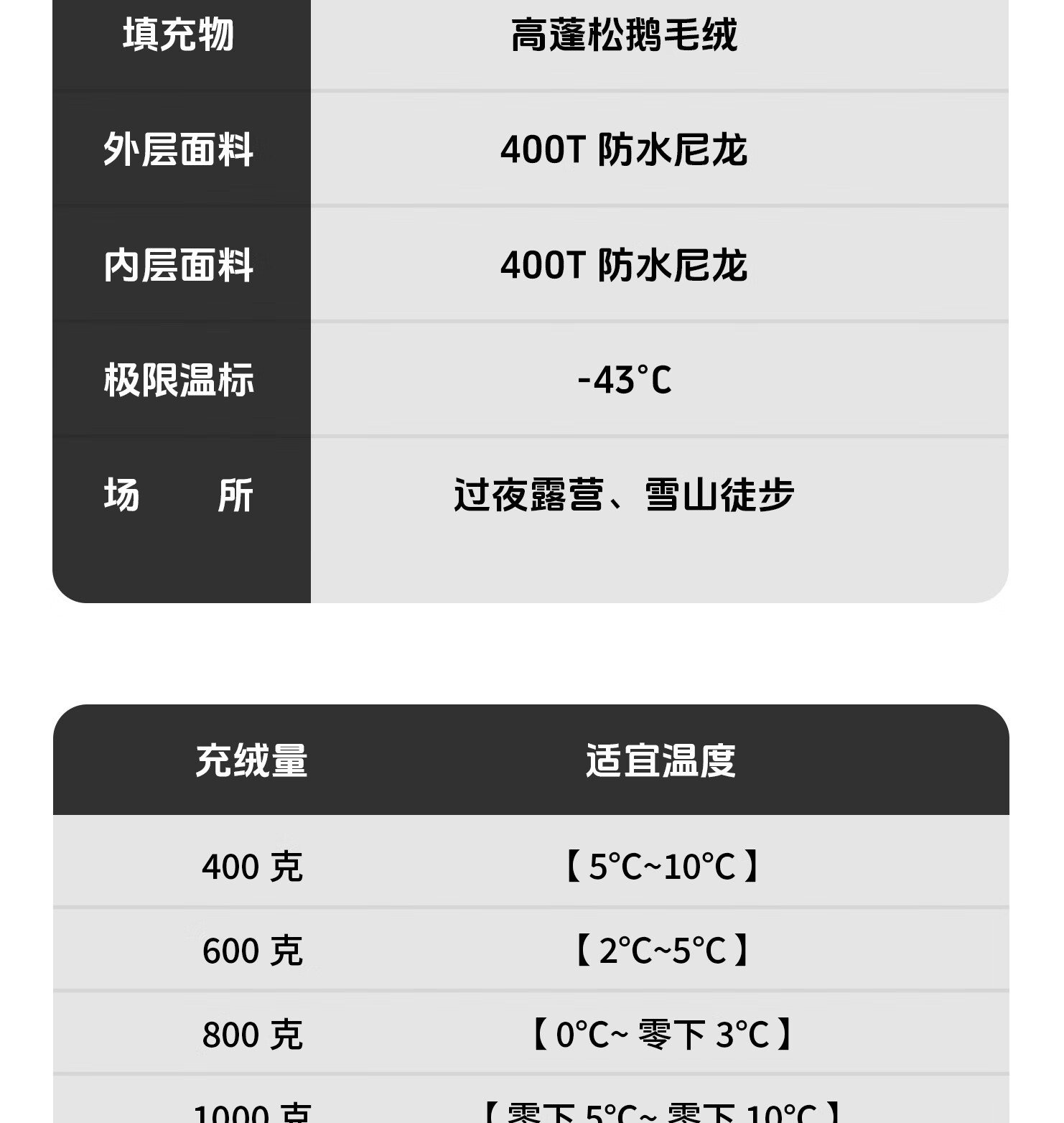 东西很不错。跟商品介绍描述的一样,很蓬松 。最开始买错了颜色 换了个黑色 产品功能:B700不低于-3 ℃问题不大。 外观材质:黑冰的细节没得说,内外层都很柔软。 商品品质:买了不少黑冰的产品了,睡袋 羽绒服之类的,质量都很好。
