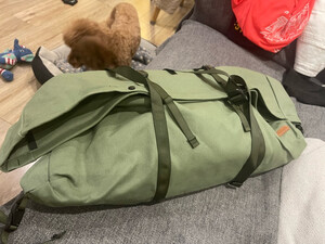 袋子很大,能装一个帐篷一个天幕,上飞机也能托运,布袋也很扎实!唯一有一个缺点就是扎的带子收缩太短了,导致我有些大一点的东西,重量轻,但是扣不上,这点希望商家可以改善!总体商品还是不错的!