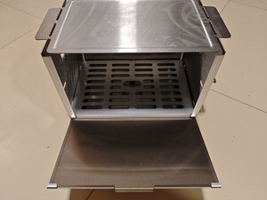 提起来分量挺足的,放木材的隔板特别厚,侧板一般般,样子倒是蛮好看,就是使用后估计会变形,因为还没用,缝隙就比较大,留着玩吧