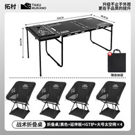 不止荒野户外折叠桌椅套装露营野餐桌蛋卷桌野餐椅子围炉煮茶便携式沙滩桌 【卡其】120CM桌+6张椅子 【加厚碳钢支架】