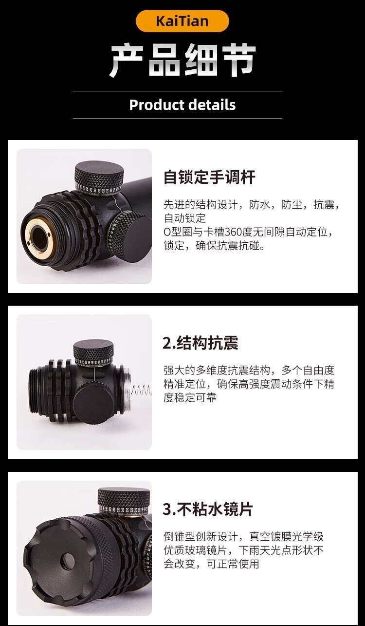 采用零胶水抗震结构,手调杆橡胶圈反螺牙自动锁定,带数值刻度记忆功能。