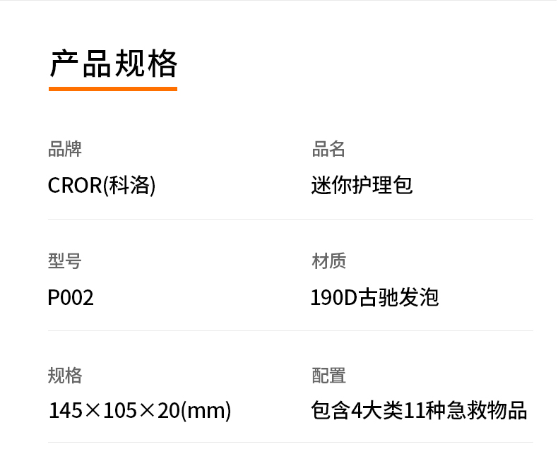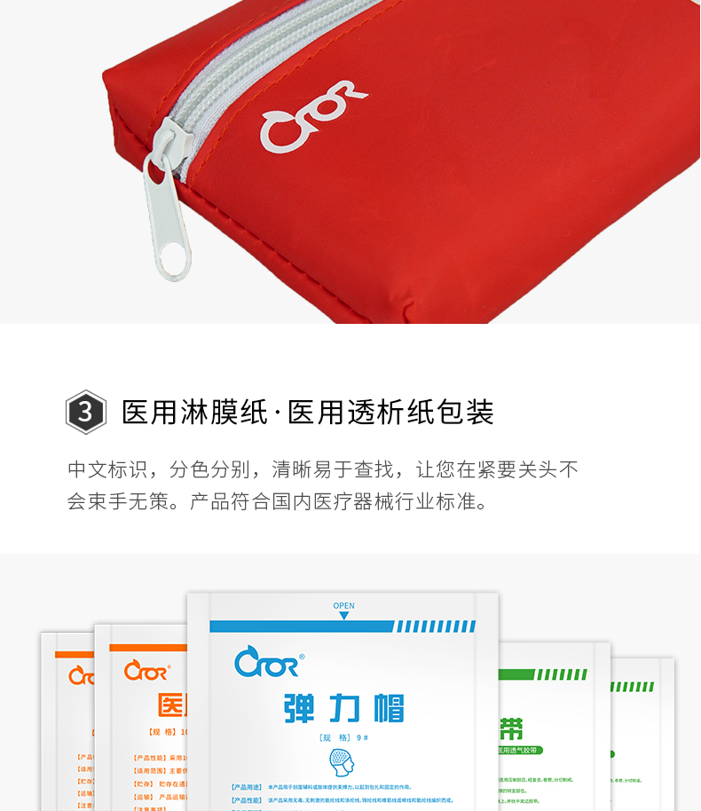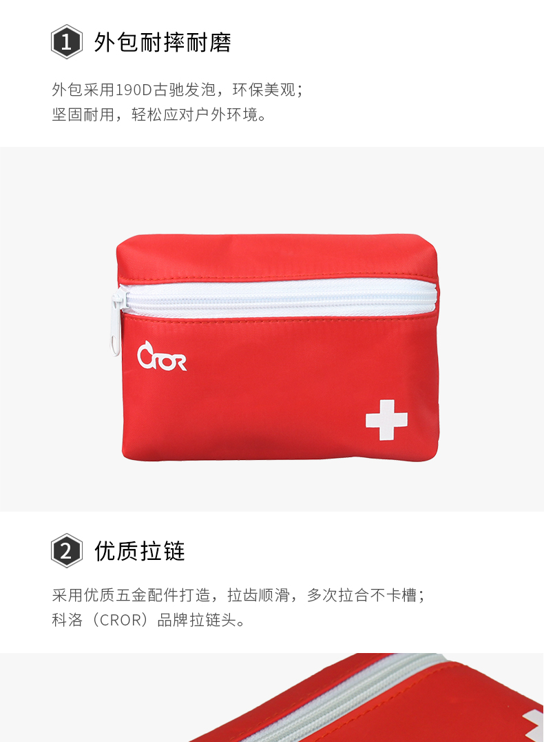 科洛 (CROR)迷你护理包 户外旅行安全医药急救包家用车载便携收纳包 P002 红色 190D水松发泡面料