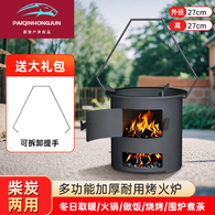 柏潮烧烤新款烧煤取暖炉子柴煤两用室内火炉灶新款加厚柴火灶围炉煮茶 炉身厚度1.1炉桥厚2.5 【小号】直径22CM高19CM