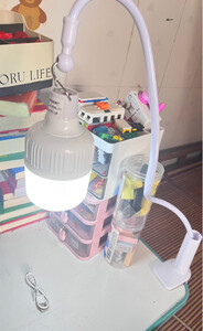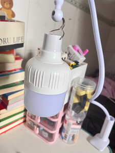 马上夏天了,买个灯用来晚上出摊用,灯杆下面是活动的,可以卡在桌面上,灯有五档模式,挺亮的,自带挂钩很方便