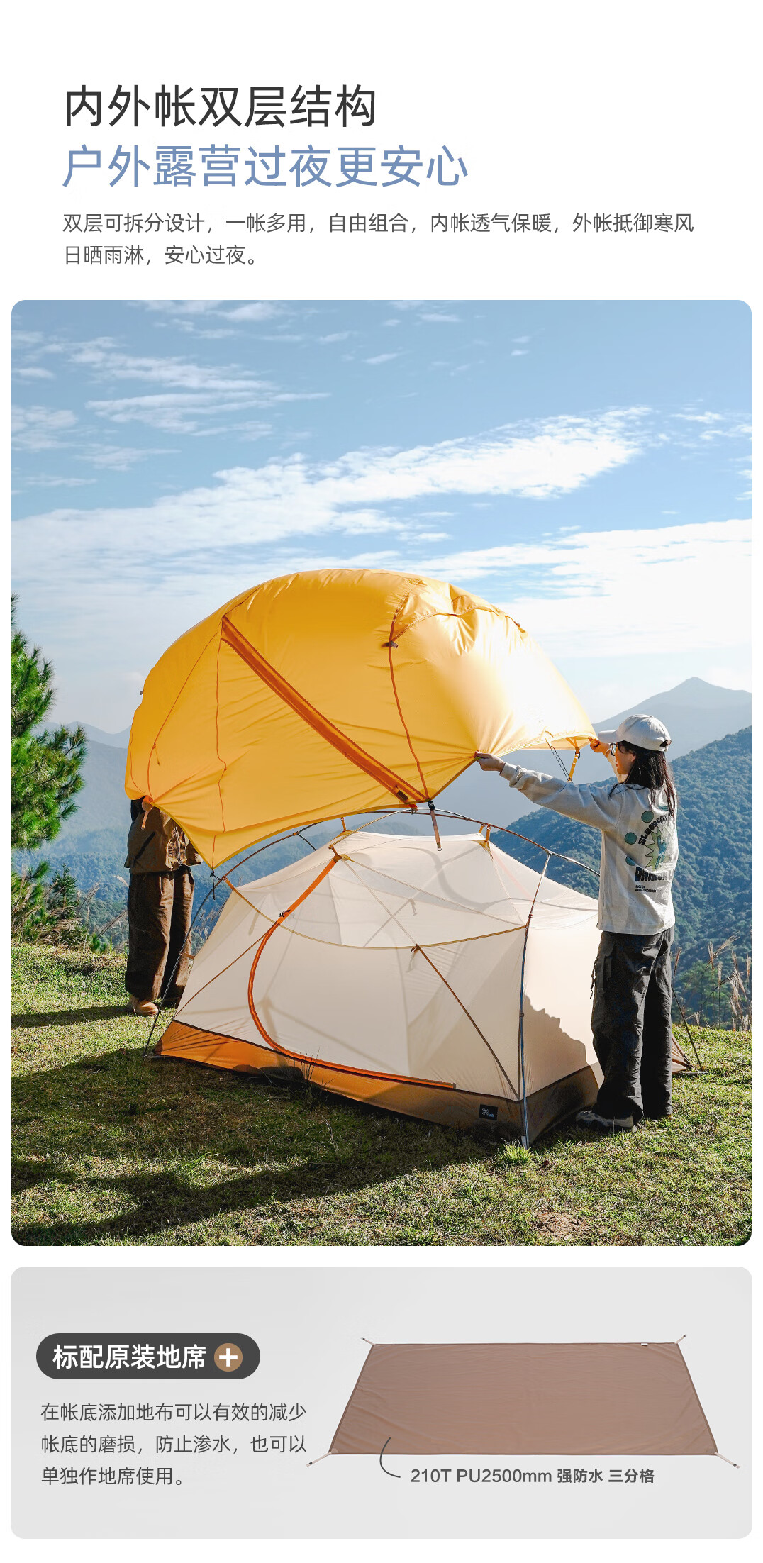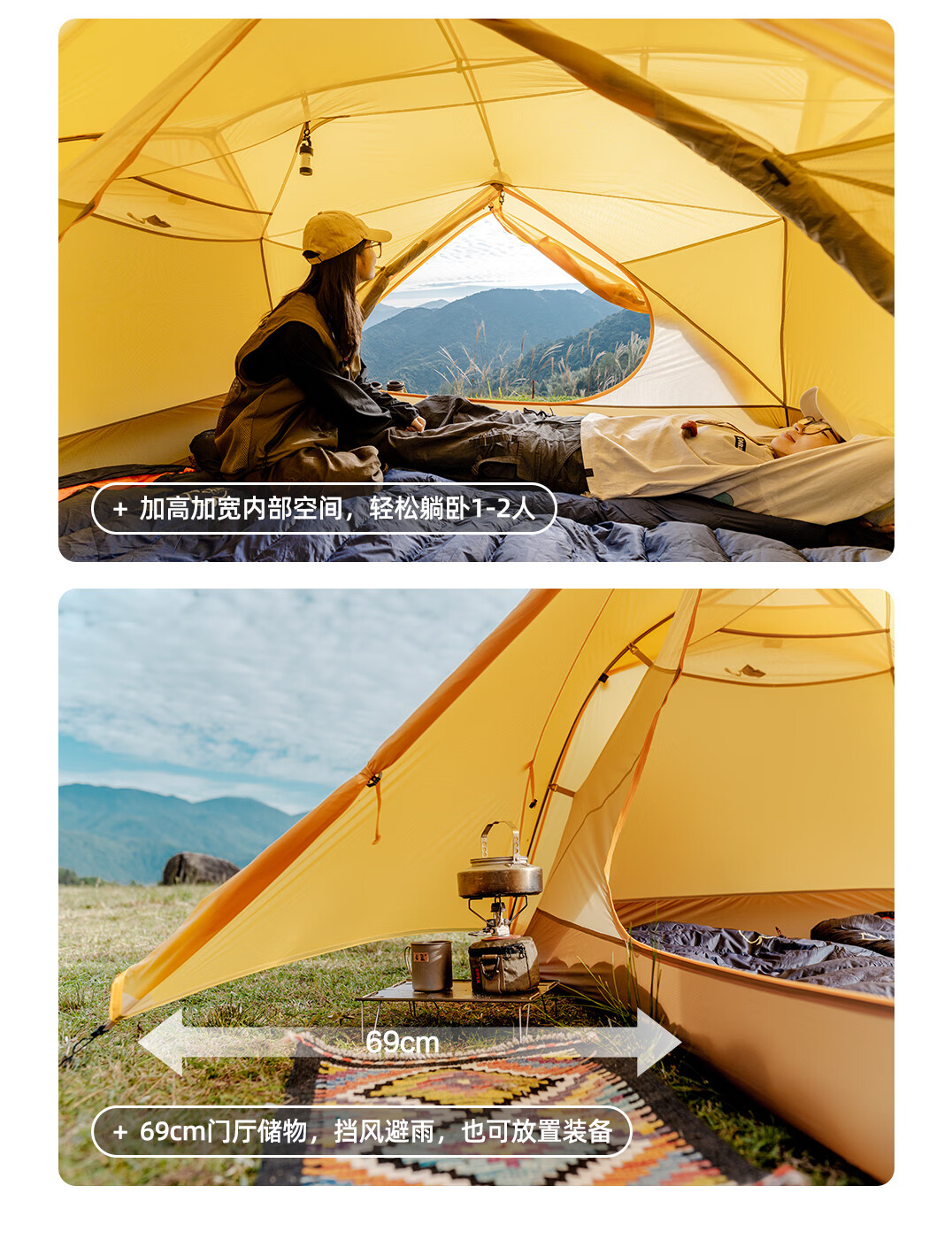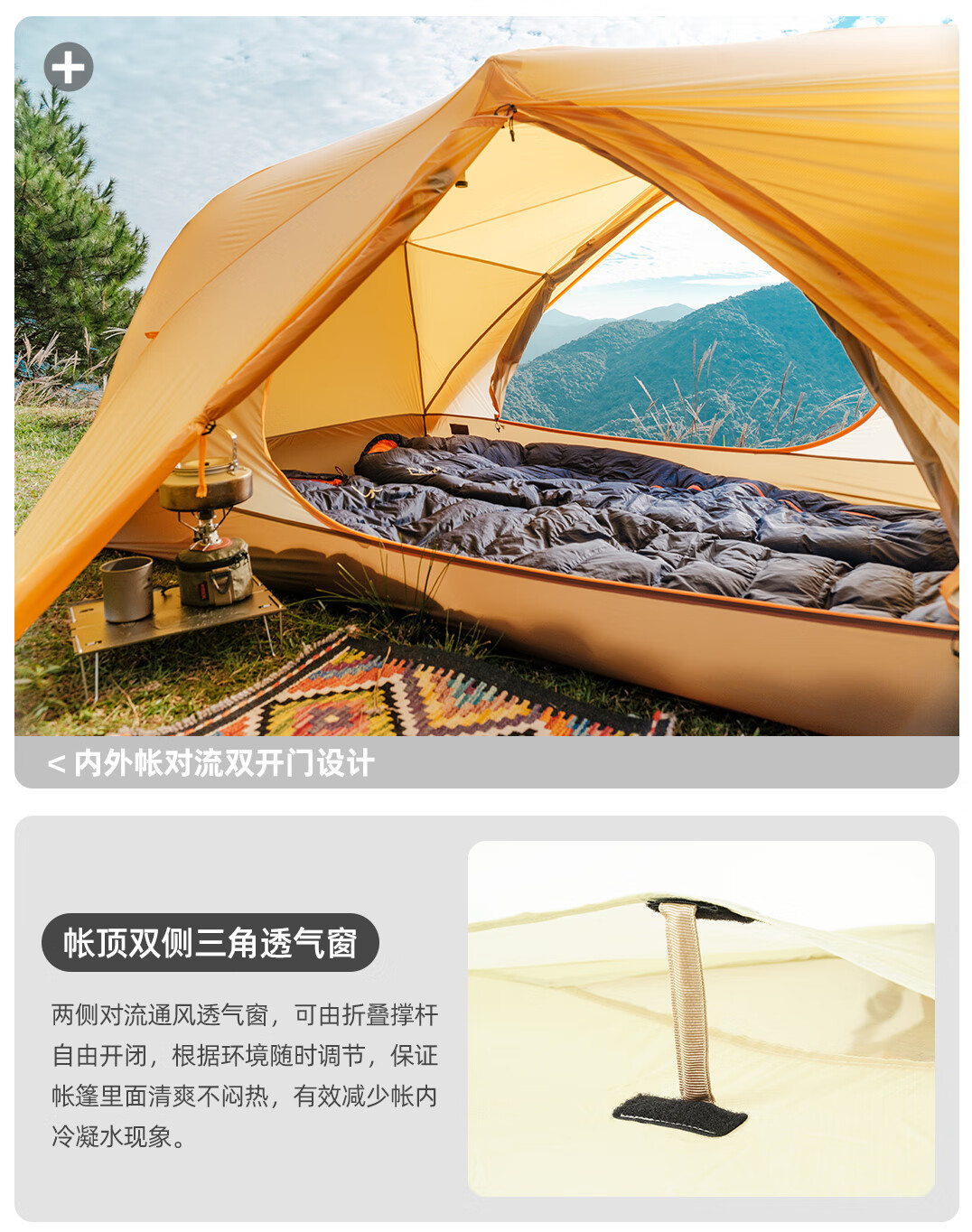 自由之魂(The Free Spirits)黑标繁星Stars2双人抗风防雨三季露营轻量化徒步登山帐篷 帐篷:沙漠黄 繁星2(附地布)