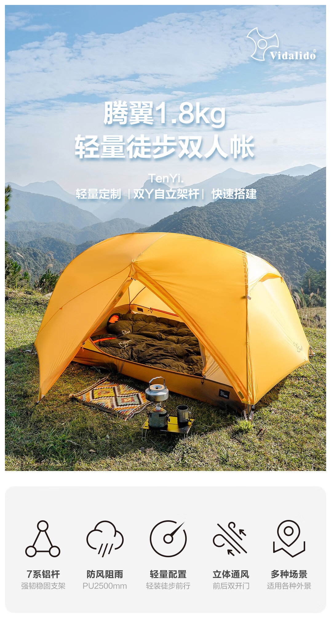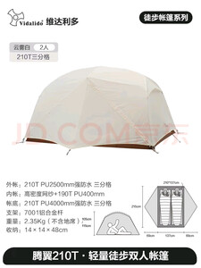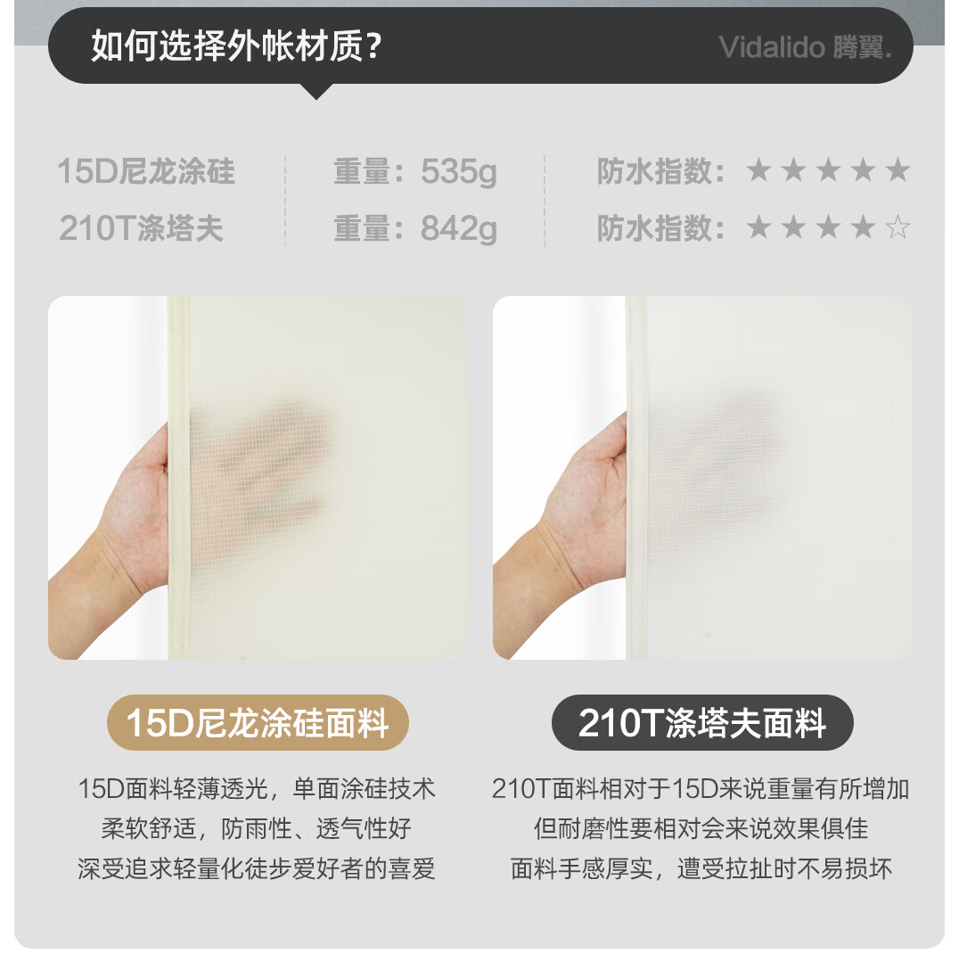 vidalido维达利多户外露营帐篷腾翼徒步帐轻量化双人野营防雨过夜登山帐篷 15D云雾白