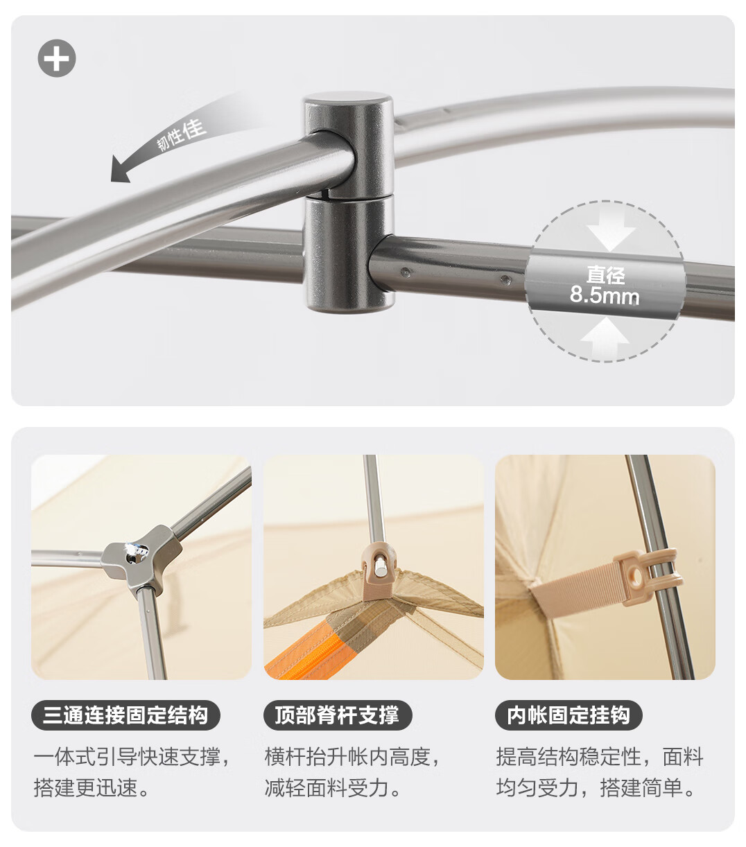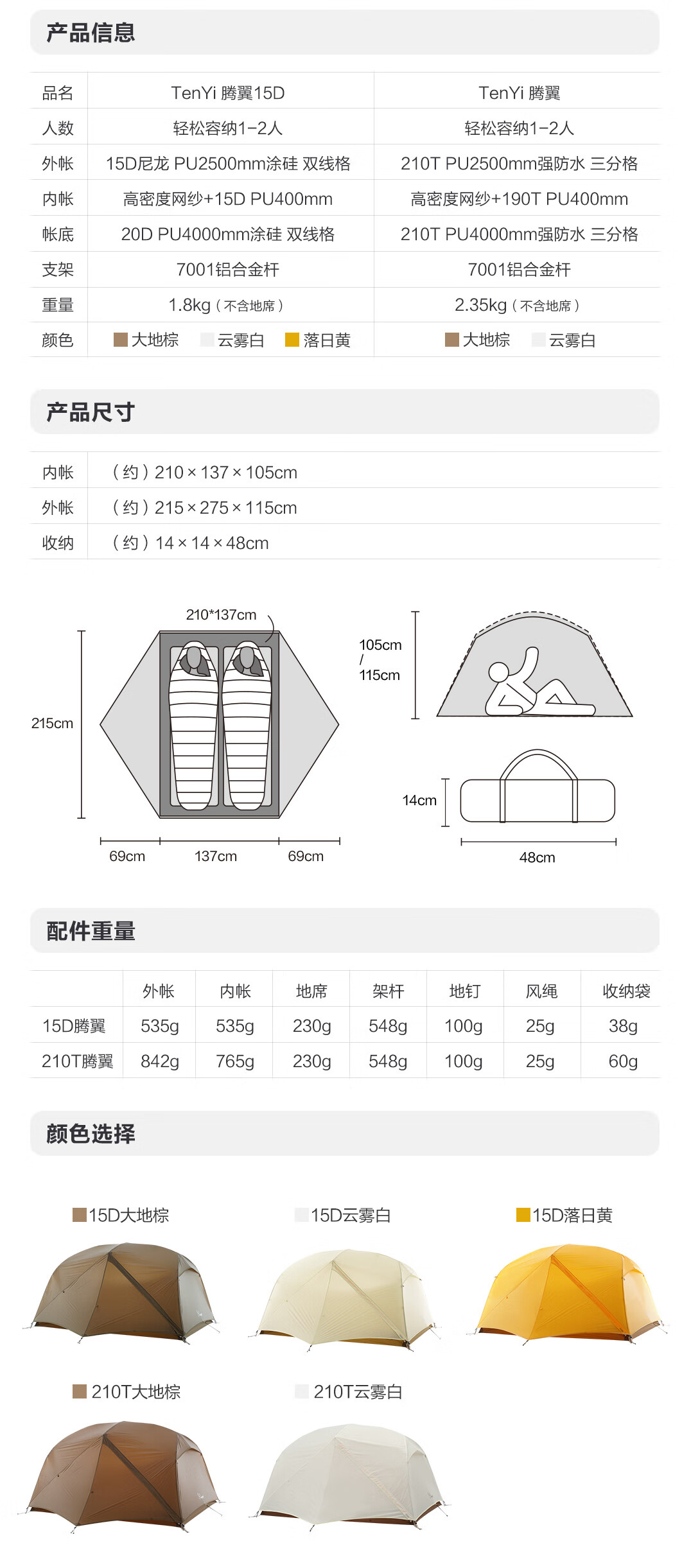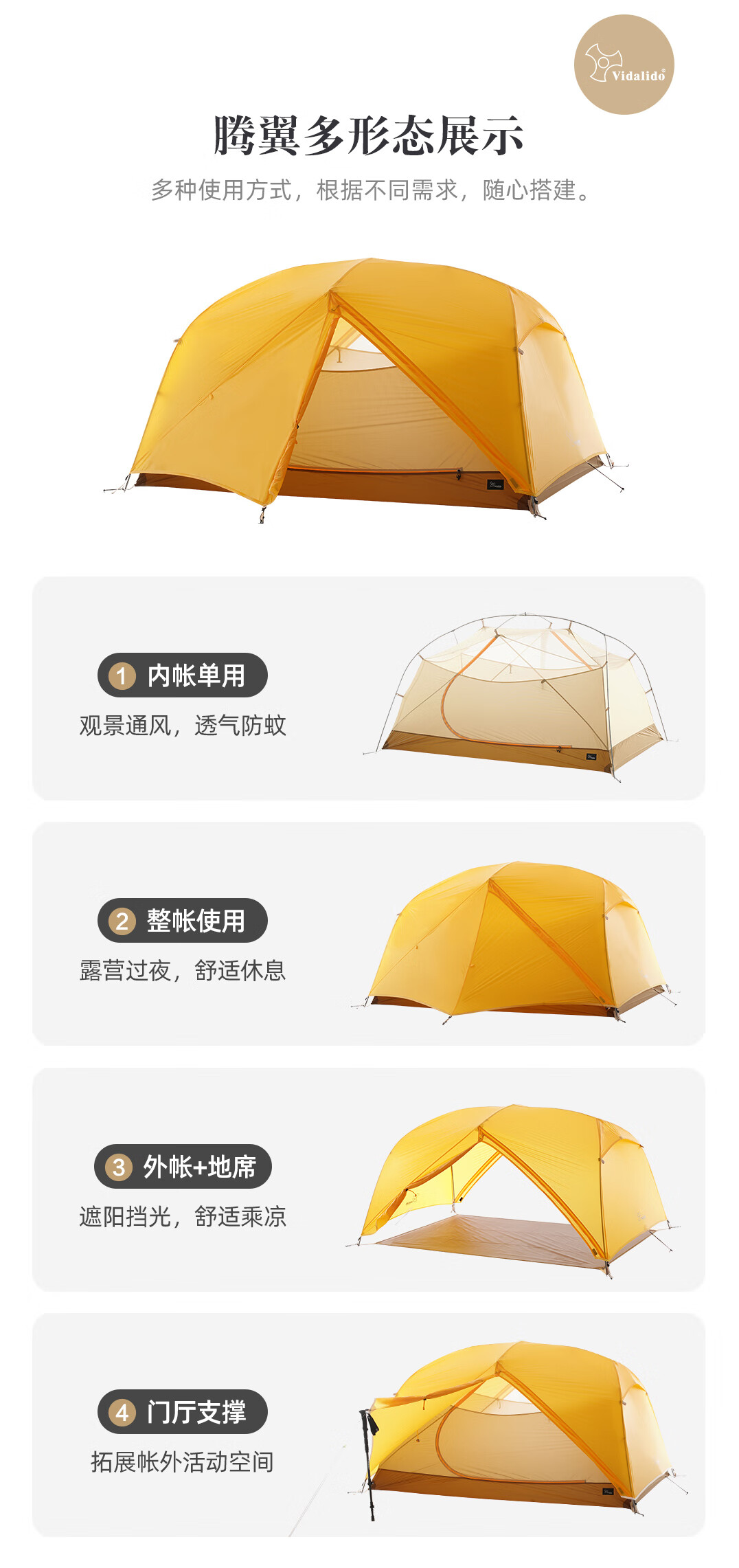 很喜欢维达利多家的帐篷,腾翼顶部空间很好,晨雾白颜色貌美,满意!