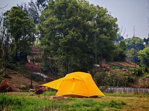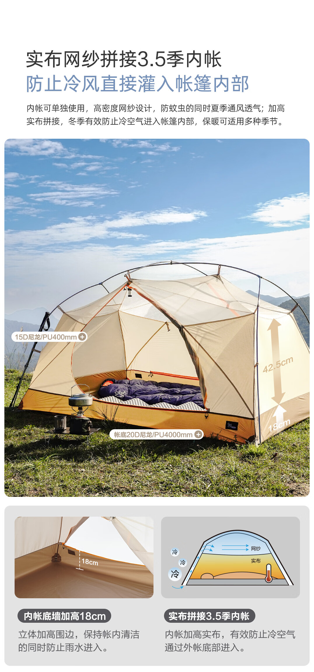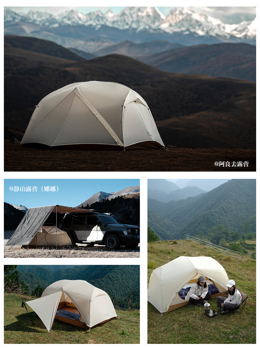 收到帐篷的第一个周末就去登山了,晚上下了点雨,风有点大,整体防水效果不错,加高内帐防风保暖好评。