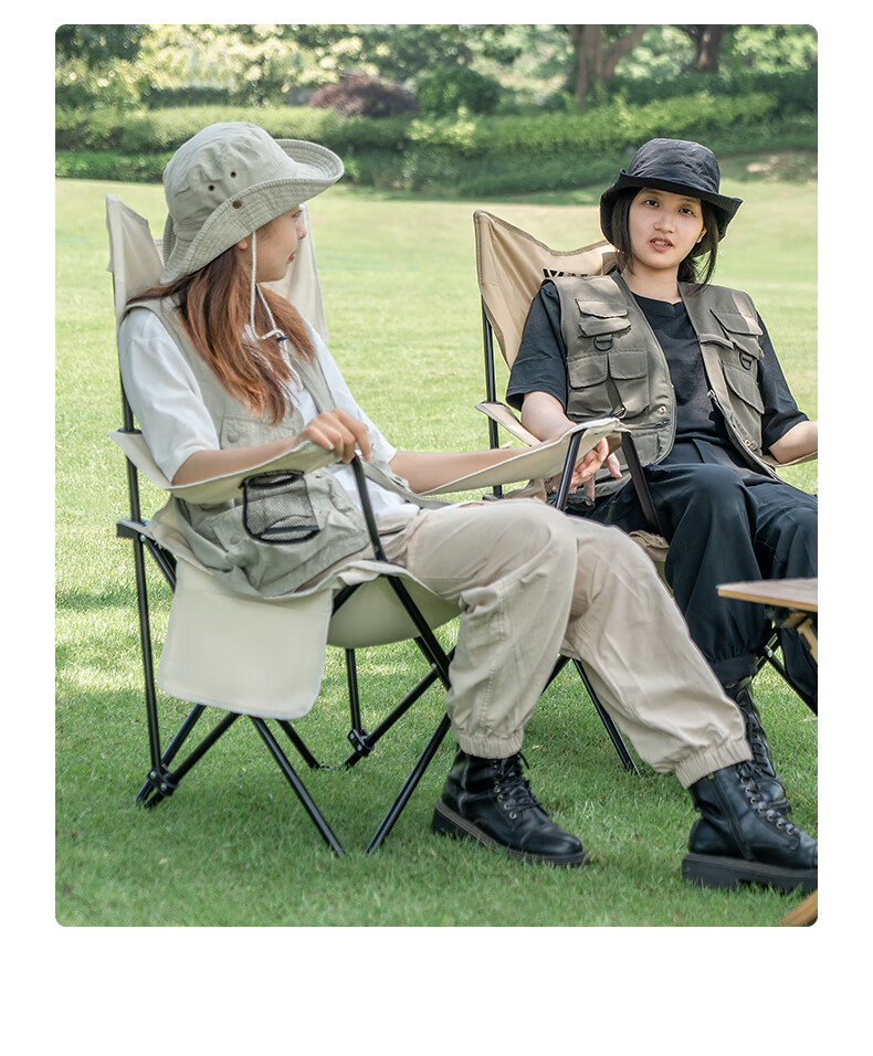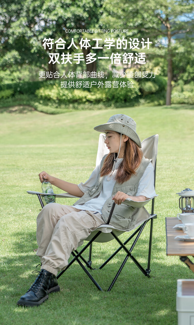 户外月亮椅 露营沙滩躺椅钓鱼椅折叠家用商用便携高靠背凳 高背月亮椅【细沙黄】