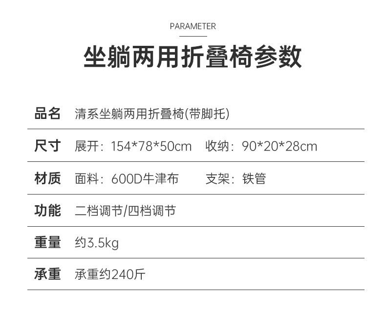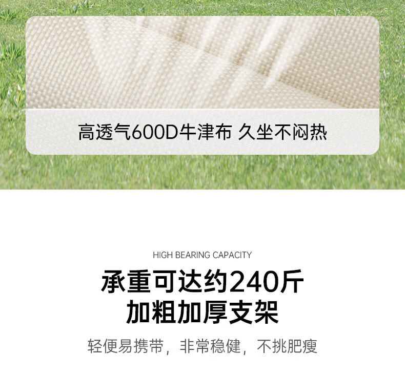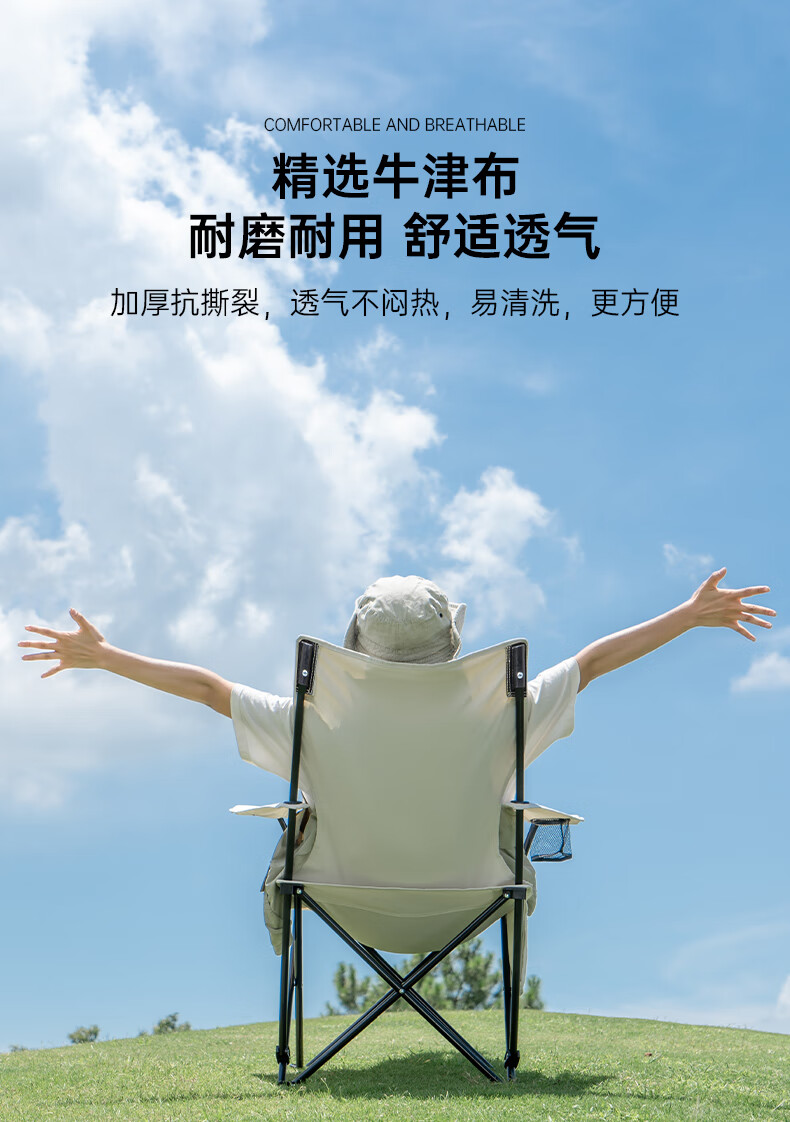四档调节设计,坐躺随心切换,露营午休两相宜。加厚牛津布面料透气耐磨,承重稳不侧翻。折叠后小巧便携,轻松塞进后备箱。脚托设计加分,躺平更舒适。性价比高,户外懒人神器,家庭野餐必备!